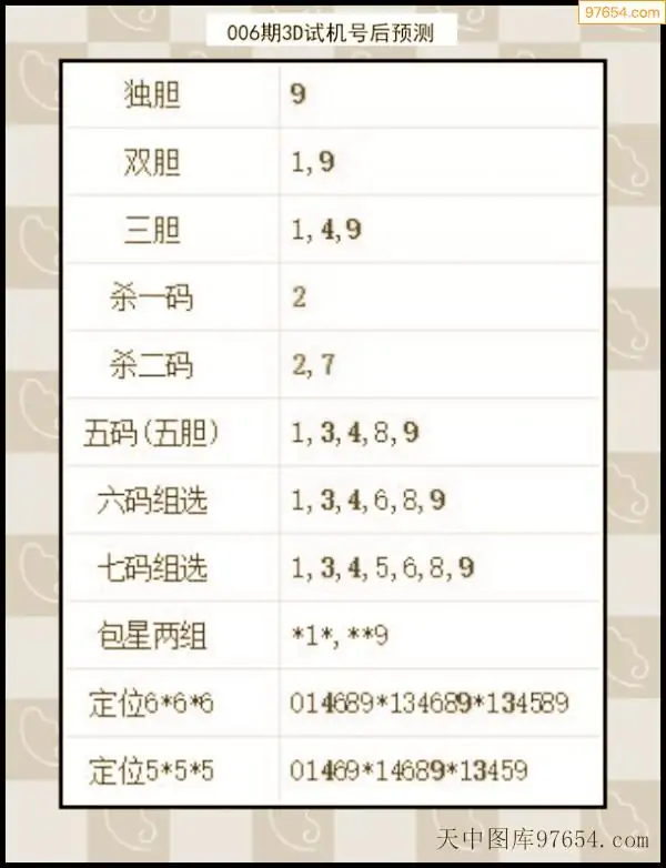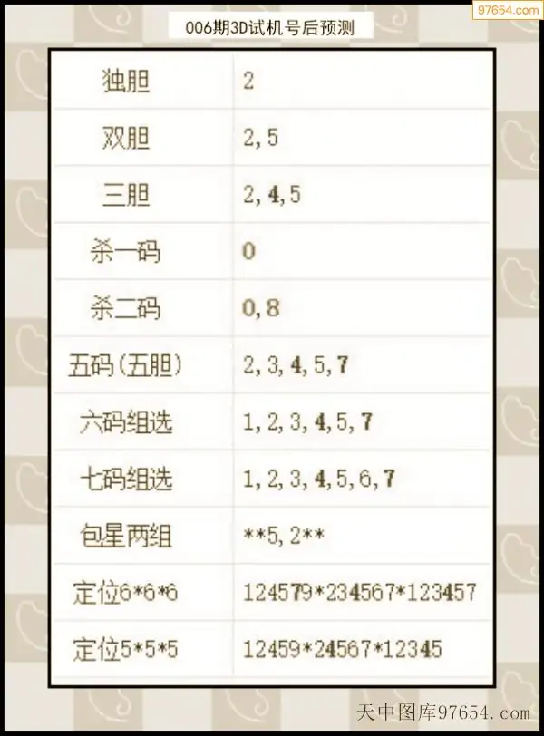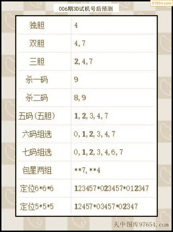 26年007期天中图库专家3D试机号后分析汇总