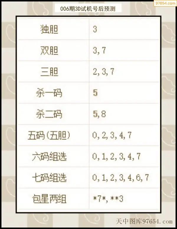 26年007期天中图库专家3D试机号后分析汇总