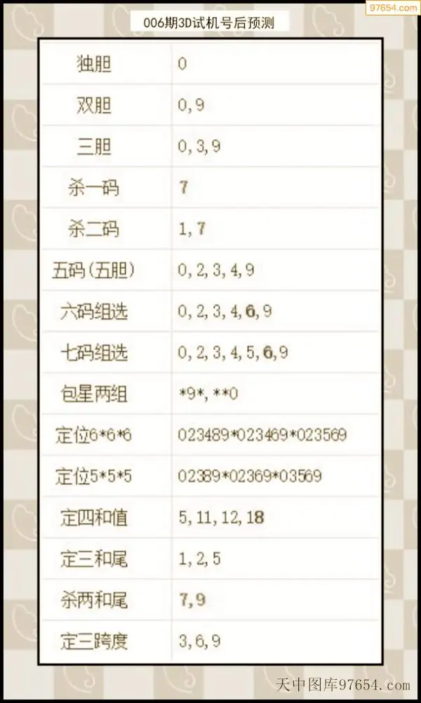 26年007期天中图库专家3D试机号后分析汇总