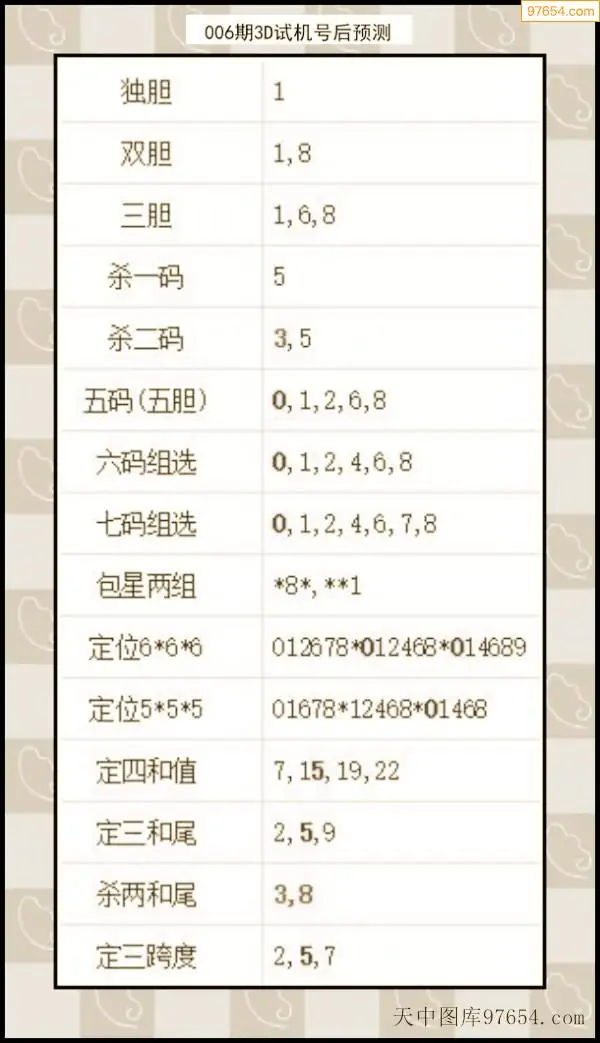 26年007期天中图库专家3D试机号后分析汇总
