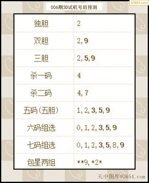 26年007期天中图库专家3D试机号后分析汇总