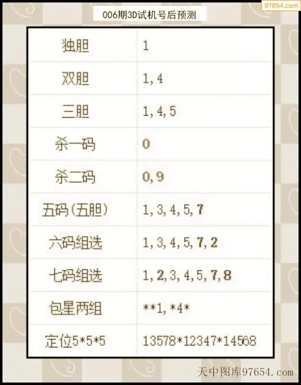 26年007期天中图库专家3D试机号后分析汇总