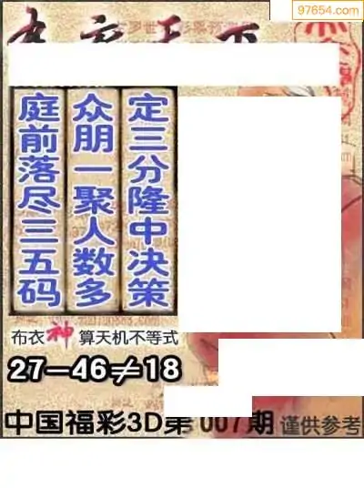 (2)26年007期本期3d图迷汇总_福彩3D图谜总汇图