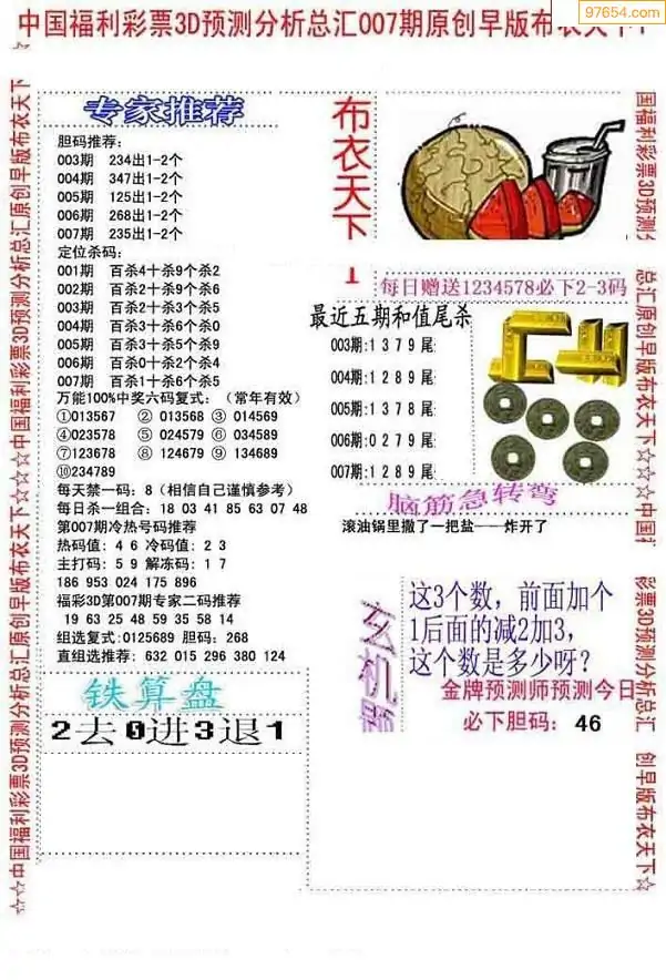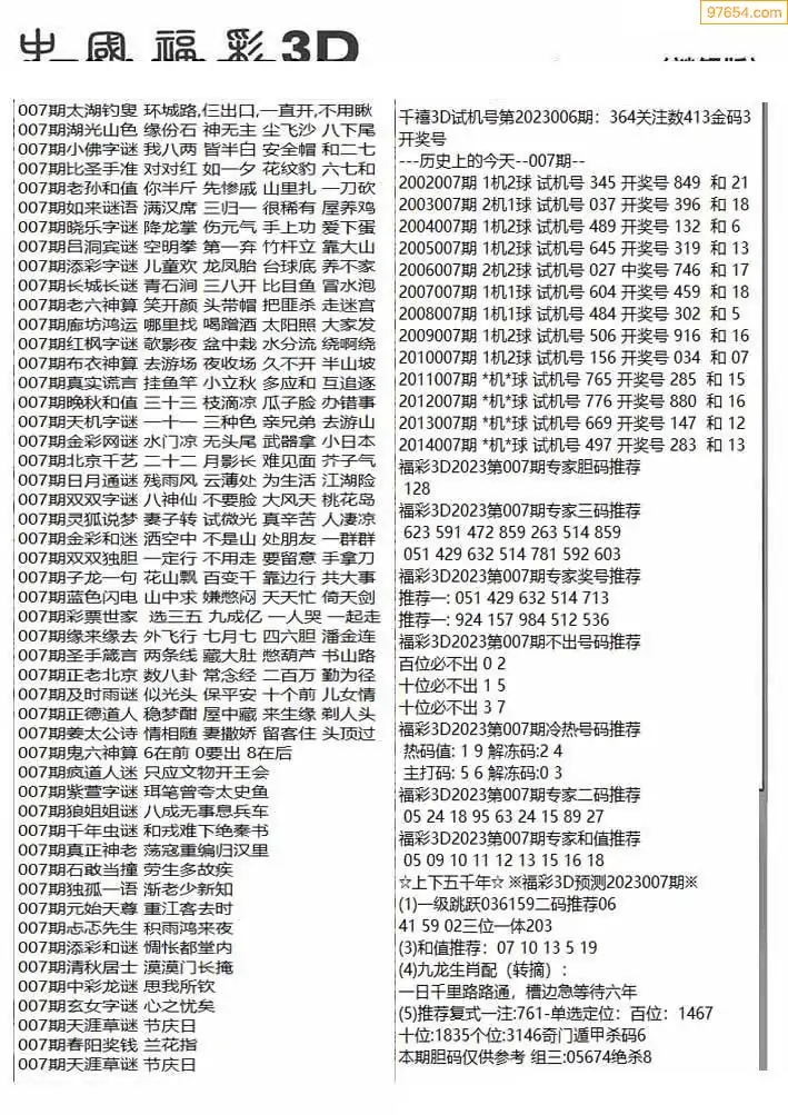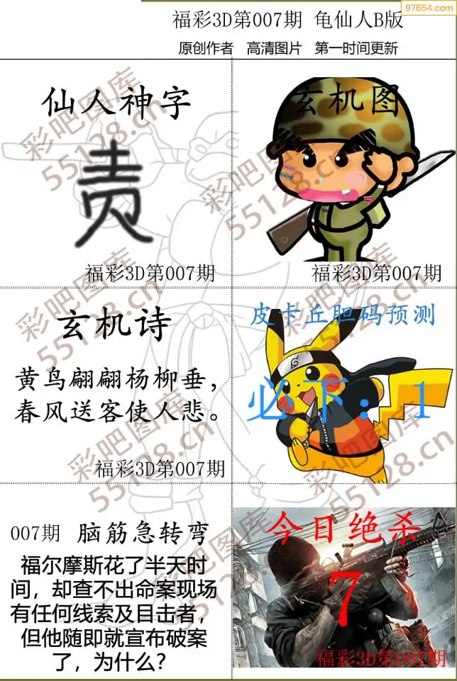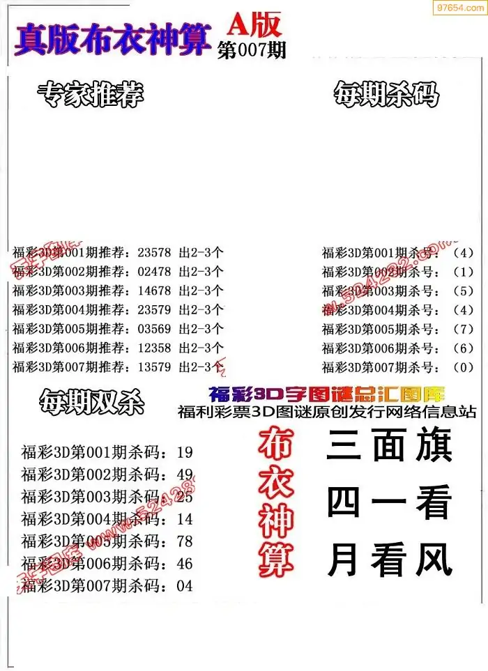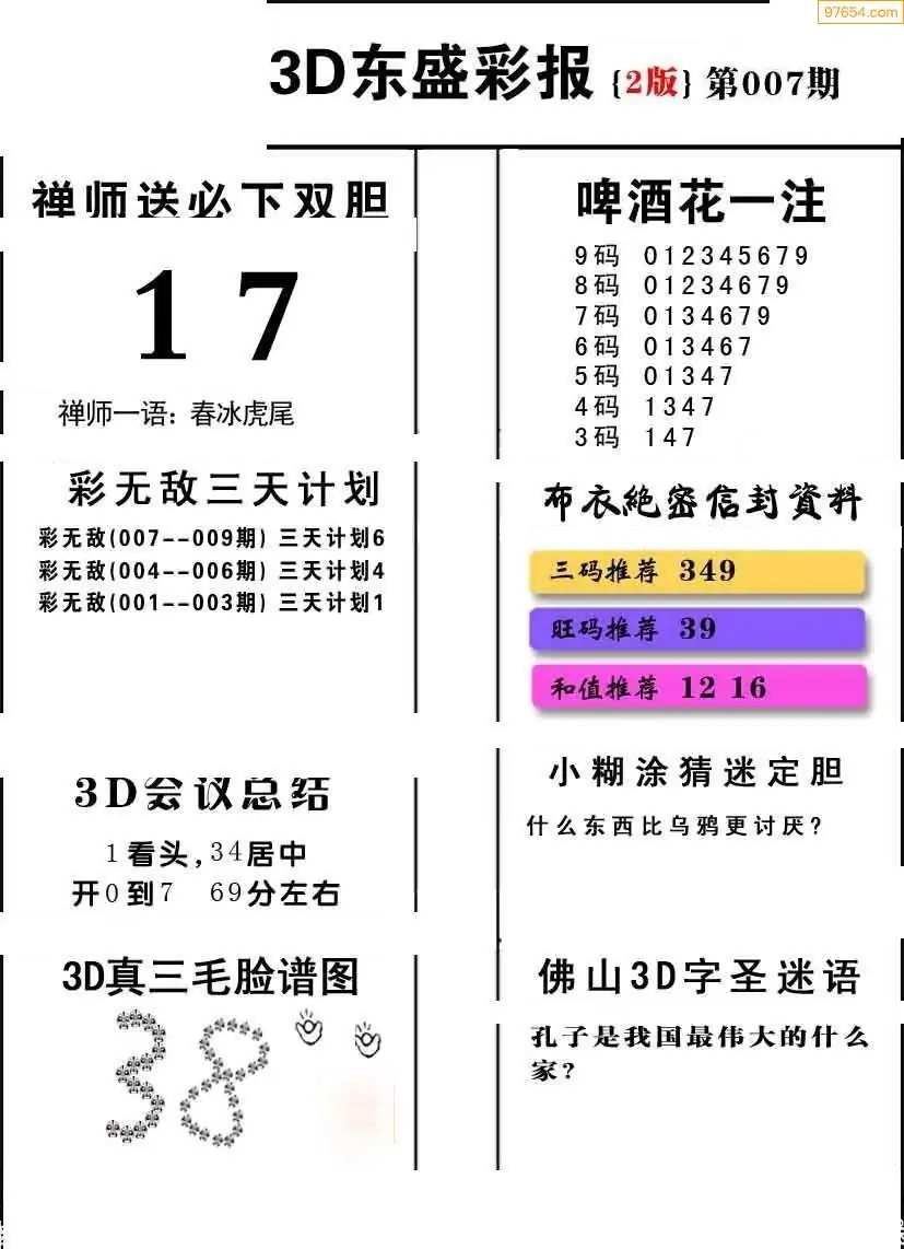 (3)2026007期3D预测总汇全图_福彩3d图谜字谜总汇