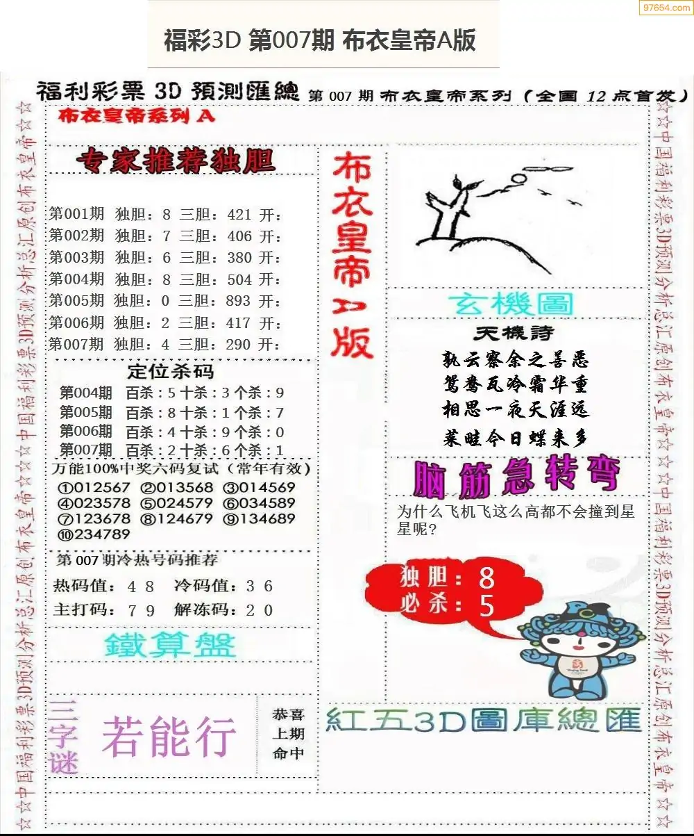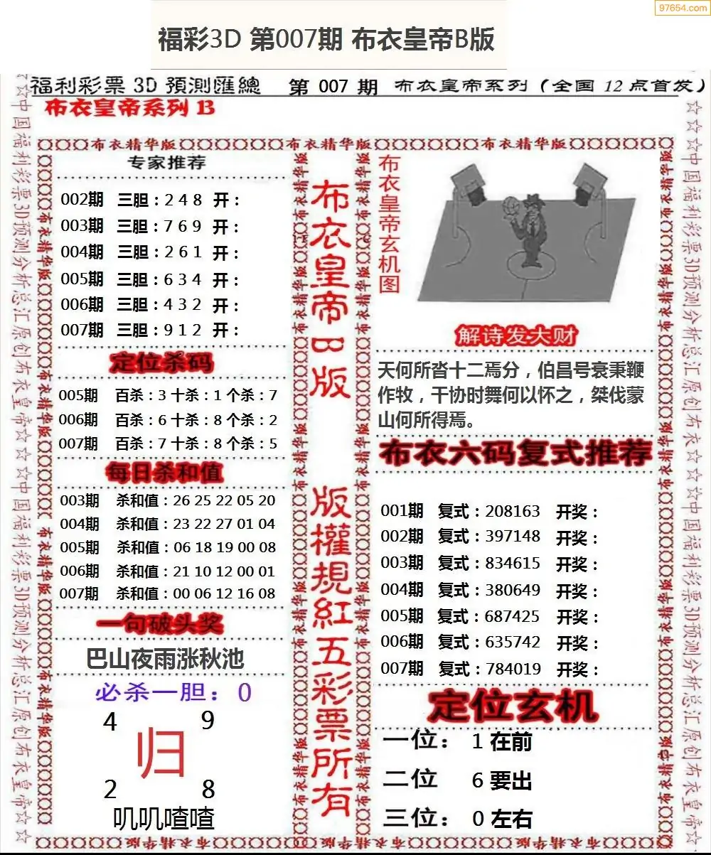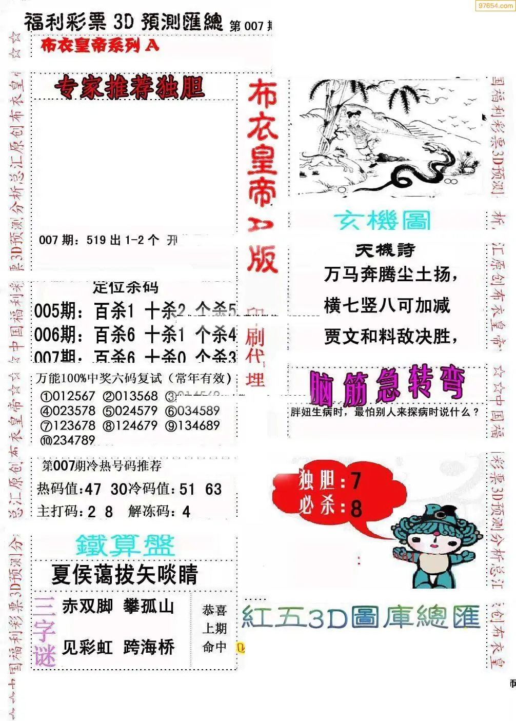(2)26年007期本期3d图迷汇总_福彩3D图谜总汇图