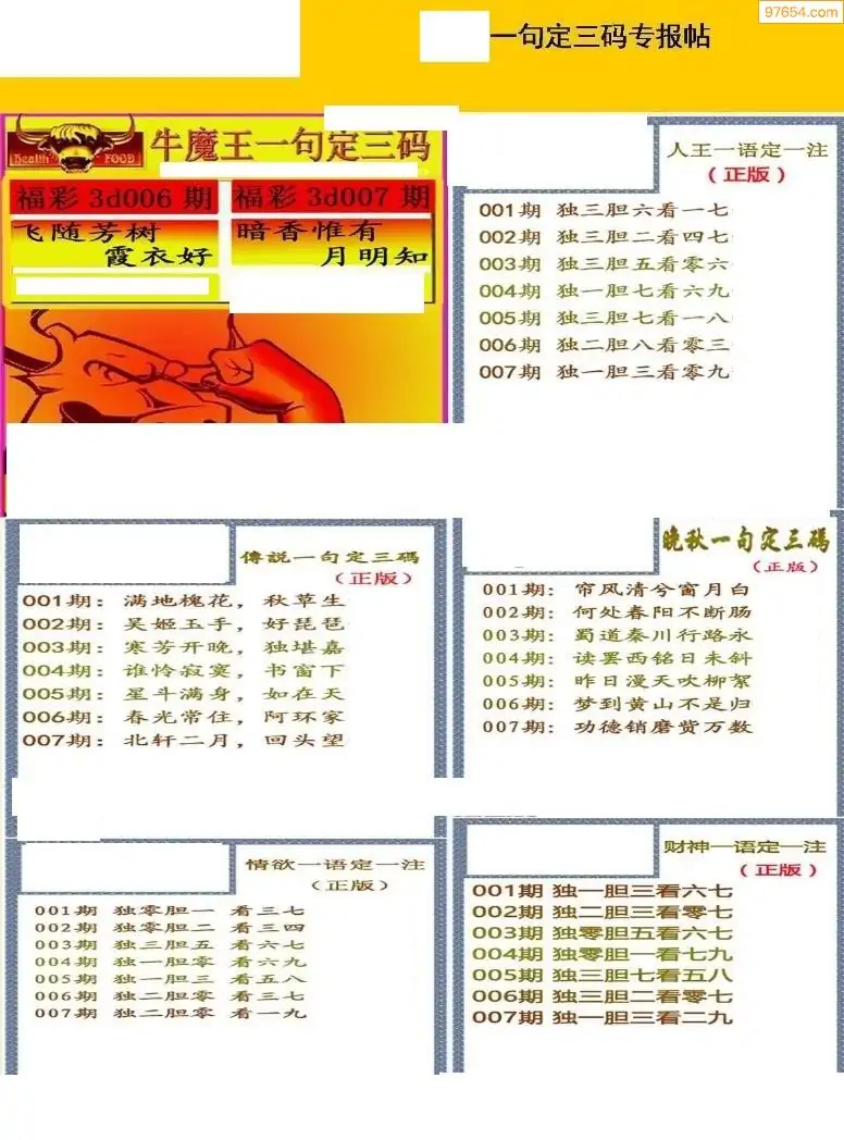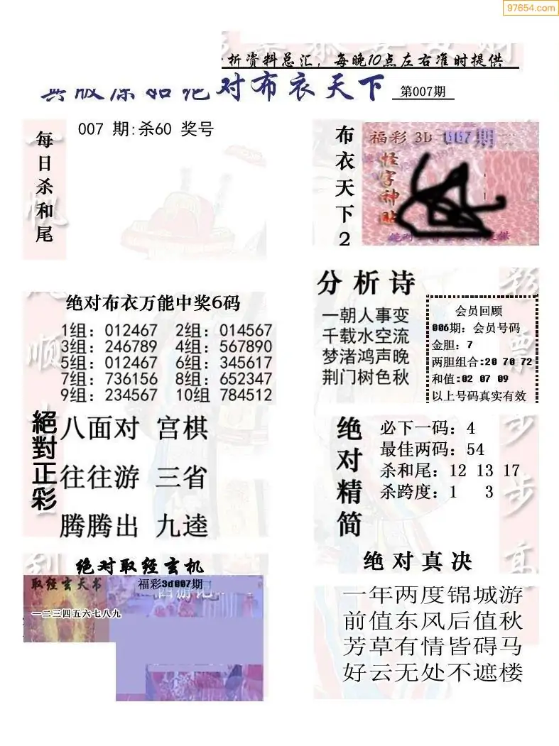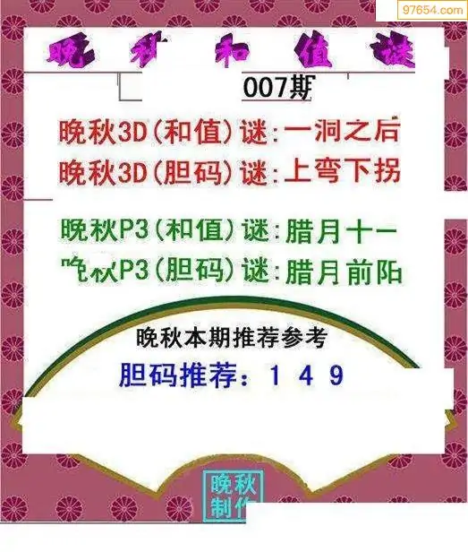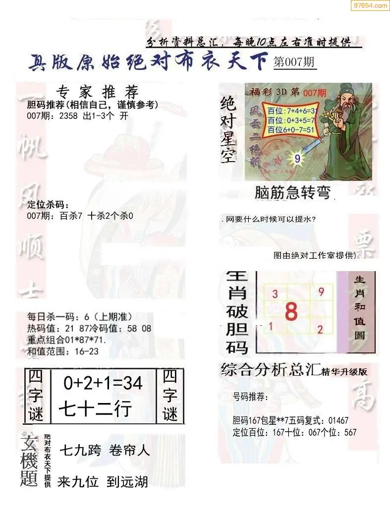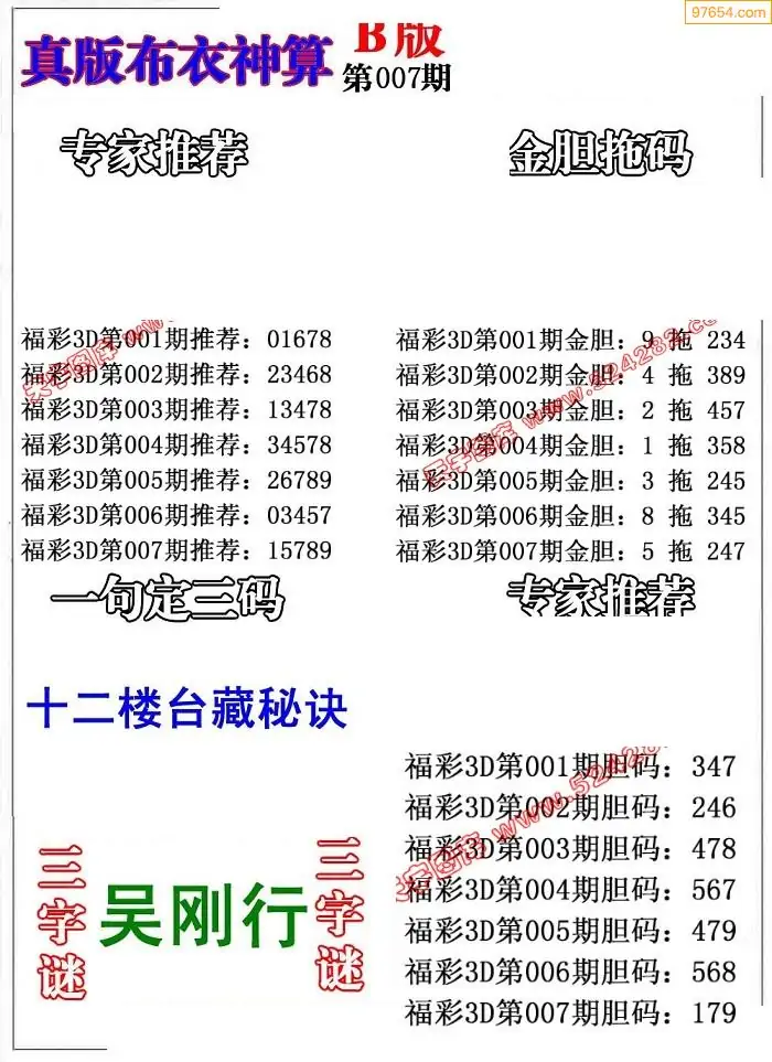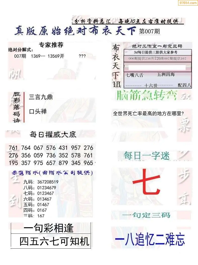 (2)26年007期本期3d图迷汇总_福彩3D图谜总汇图