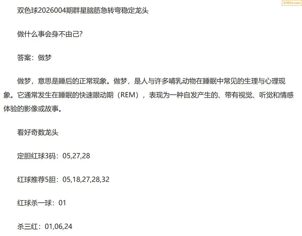 群星双色球26年004期脑筋急转弯龙头谜语
