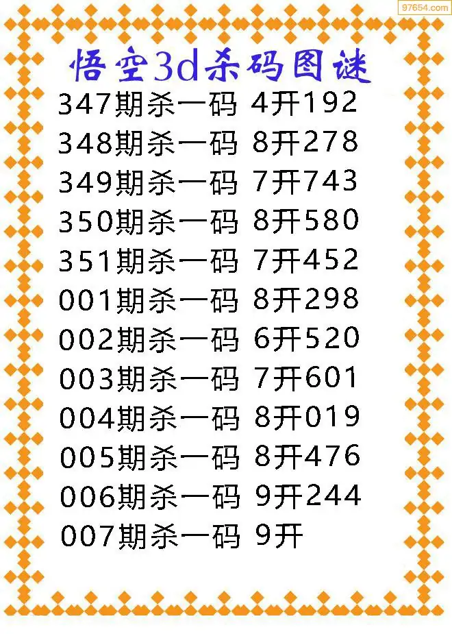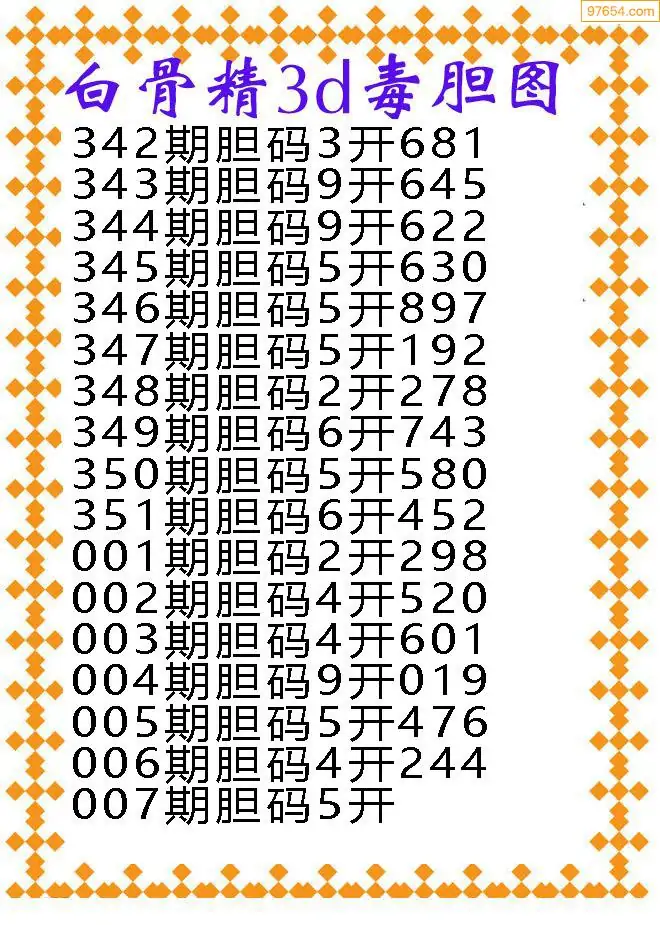 007期97654本站收集胆码出号预测