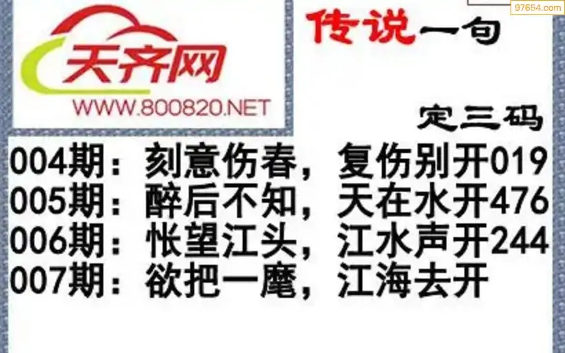 福彩3d26年007期字谜传说一句定三码