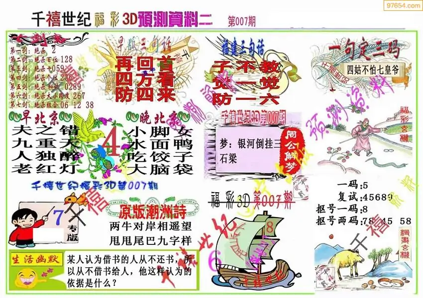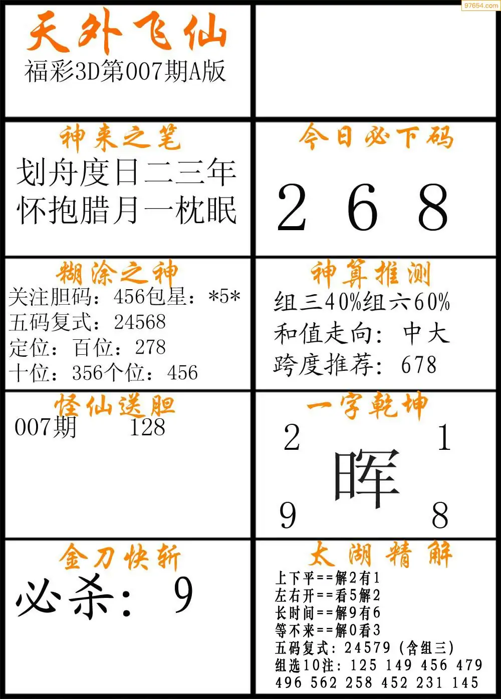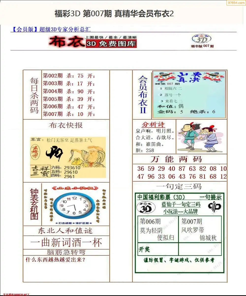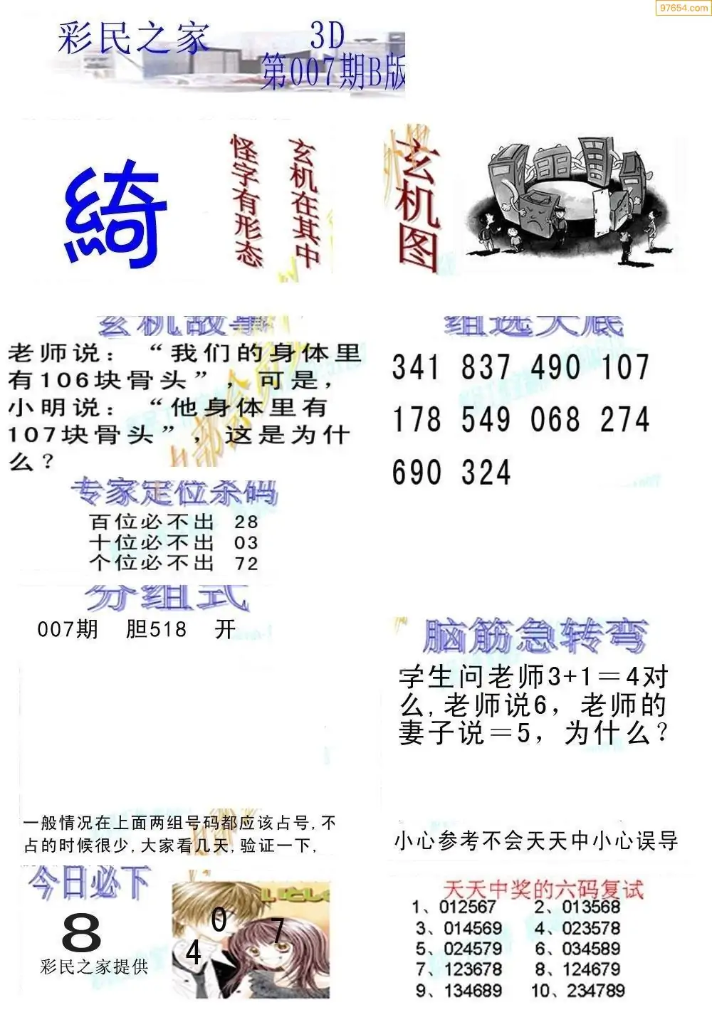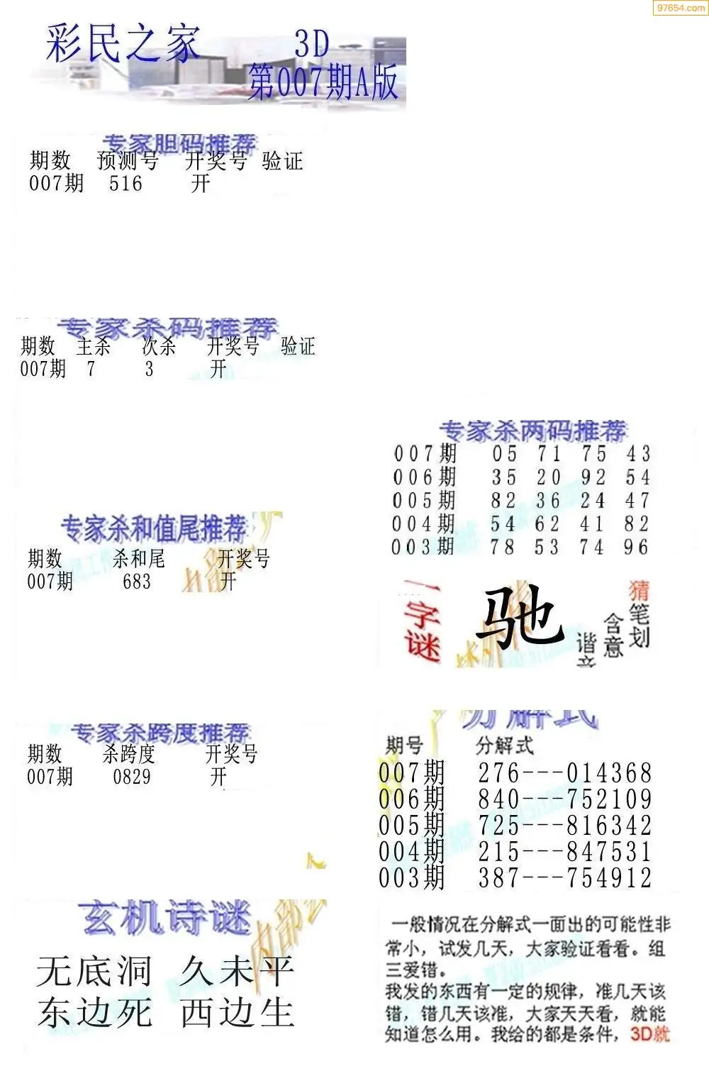 (3)2026007期3D预测总汇全图_福彩3d图谜字谜总汇