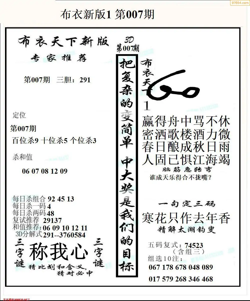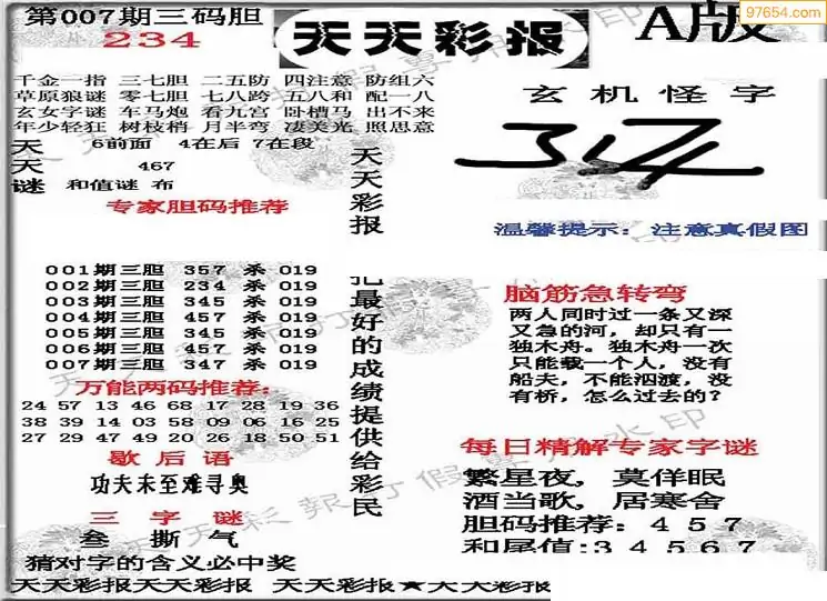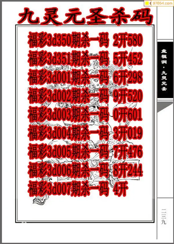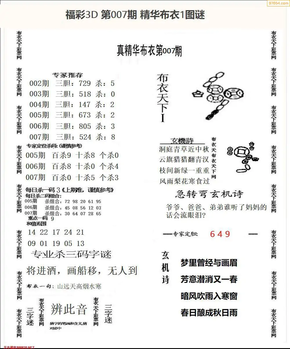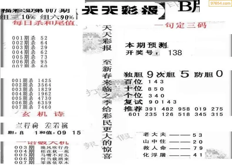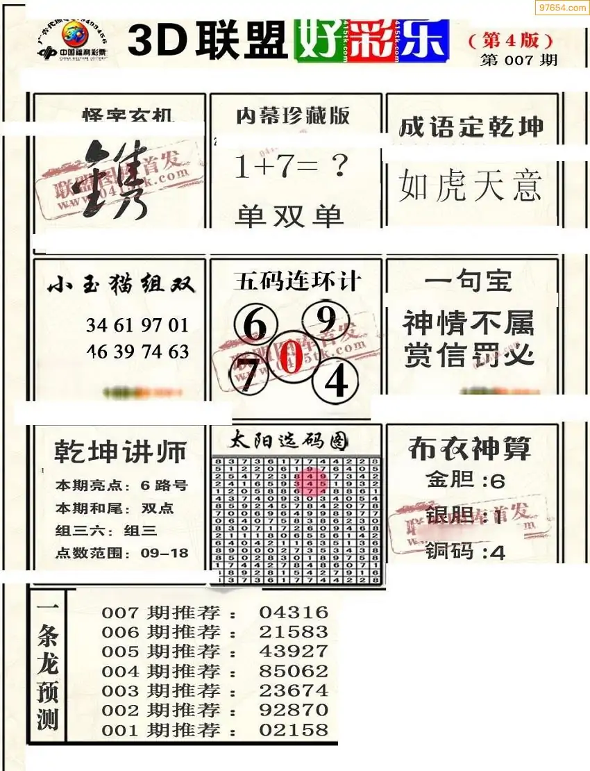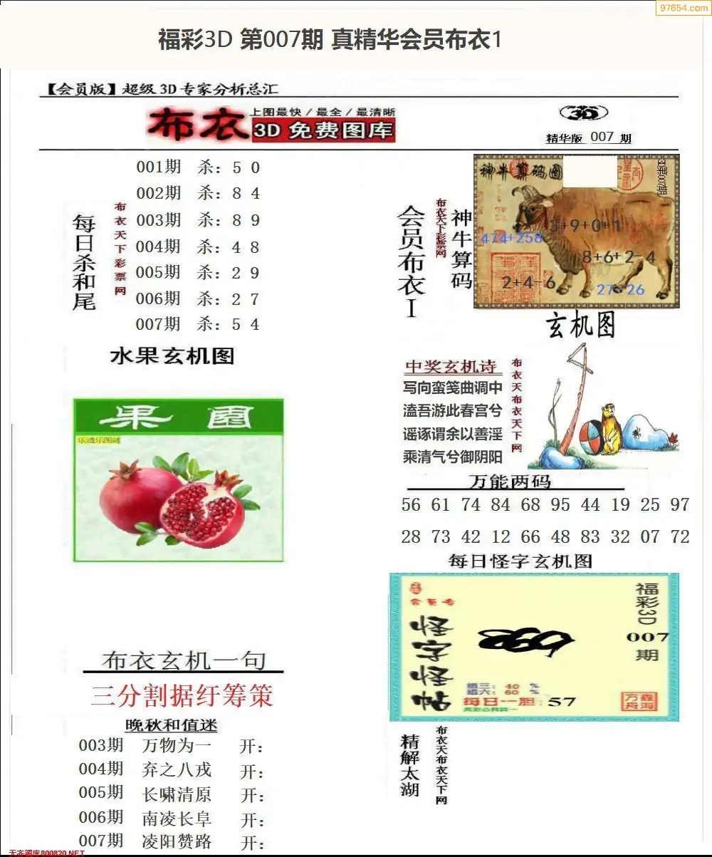 (3)2026007期3D预测总汇全图_福彩3d图谜字谜总汇