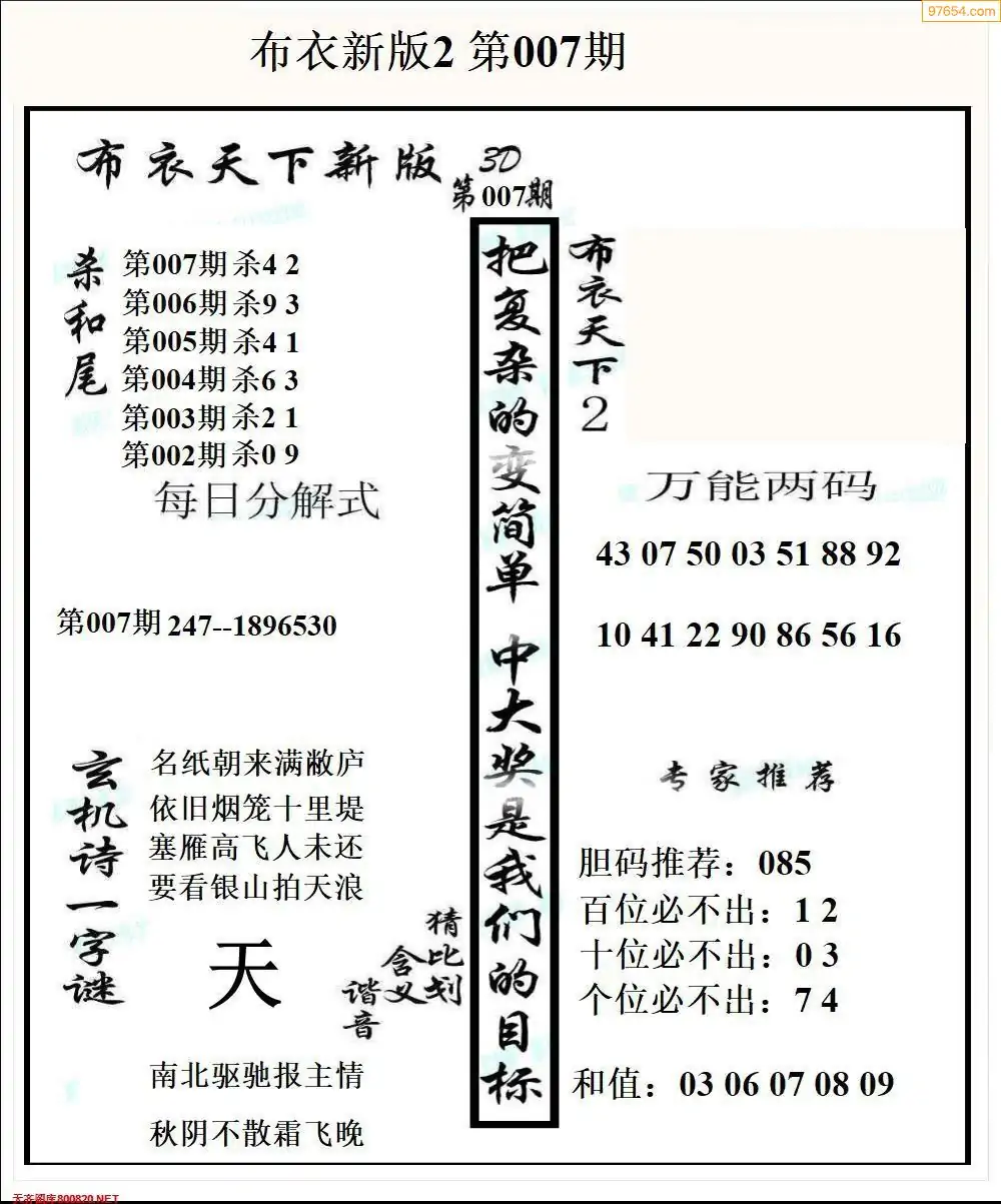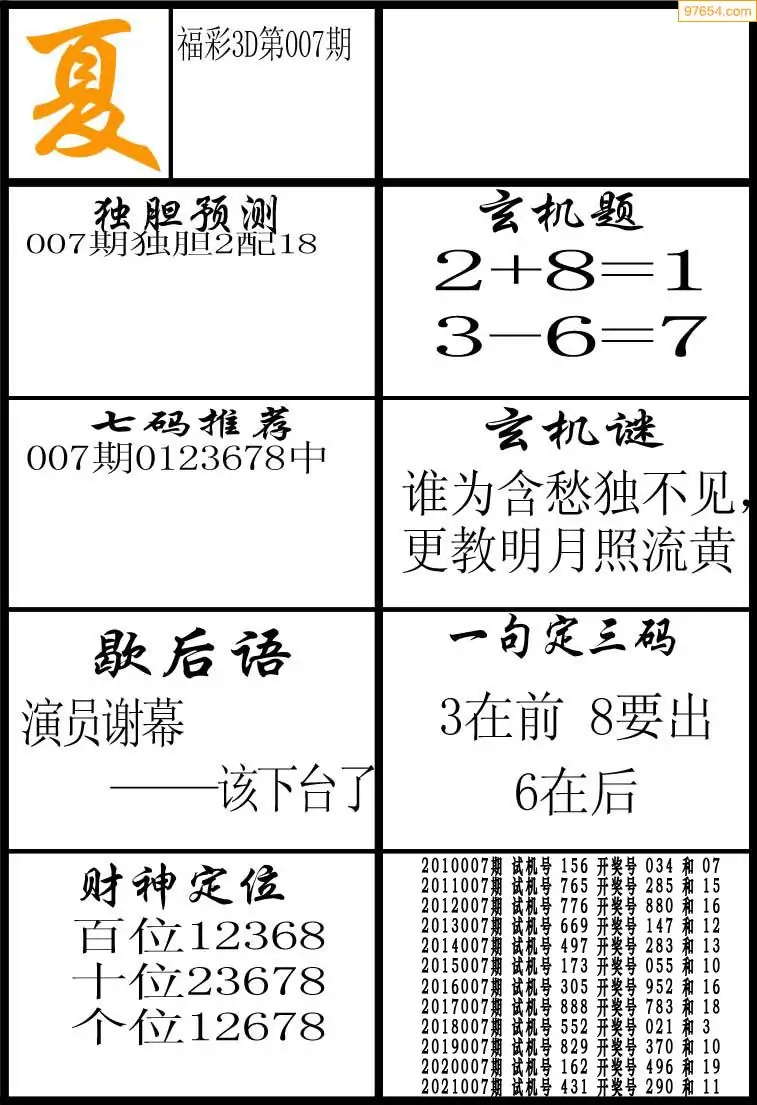 (2)26年007期本期3d图迷汇总_福彩3D图谜总汇图