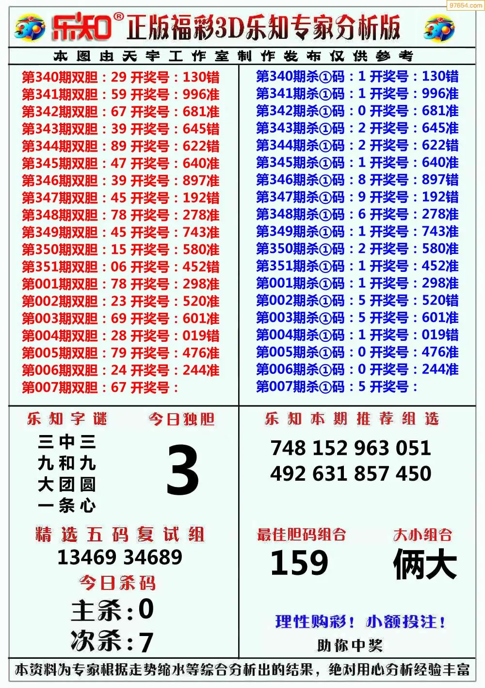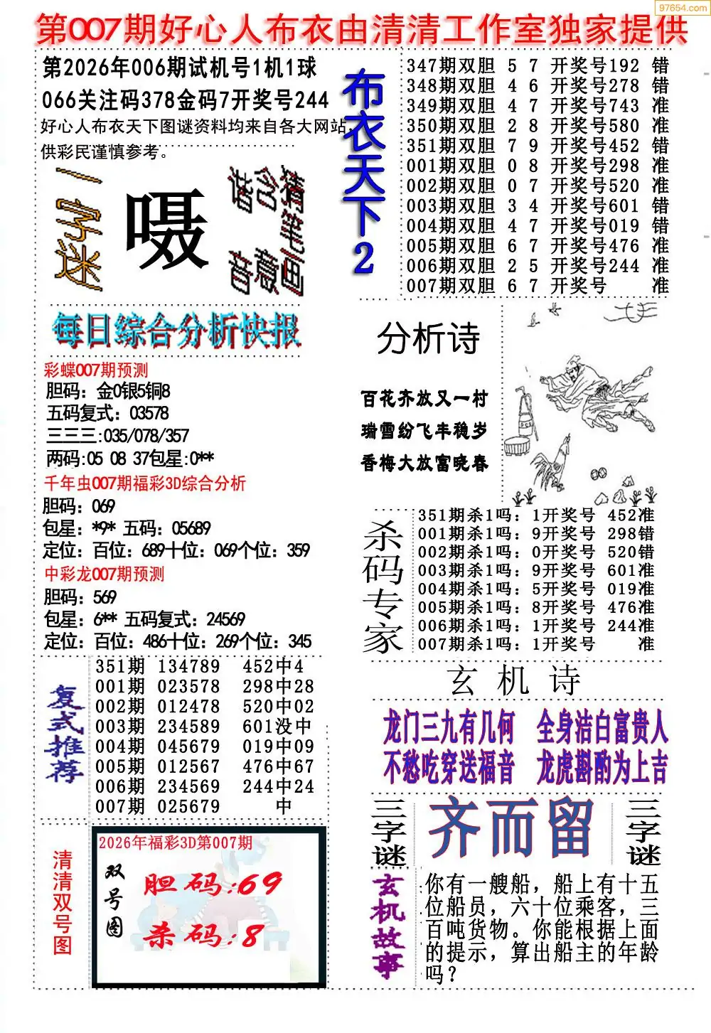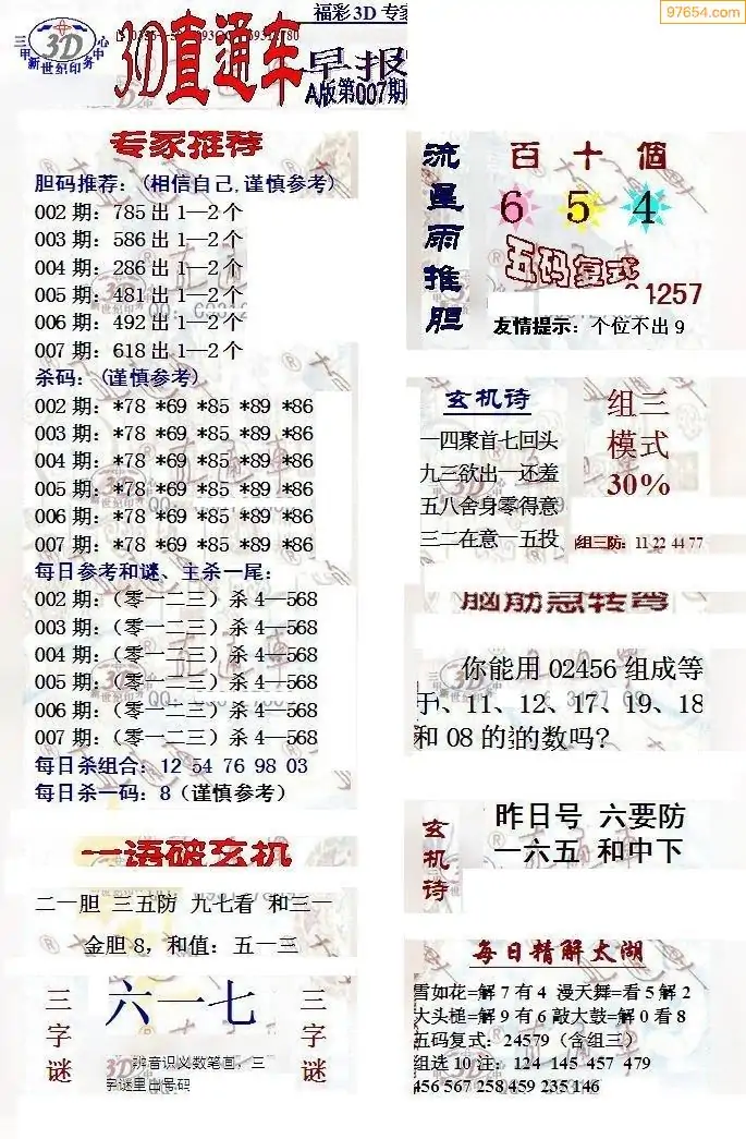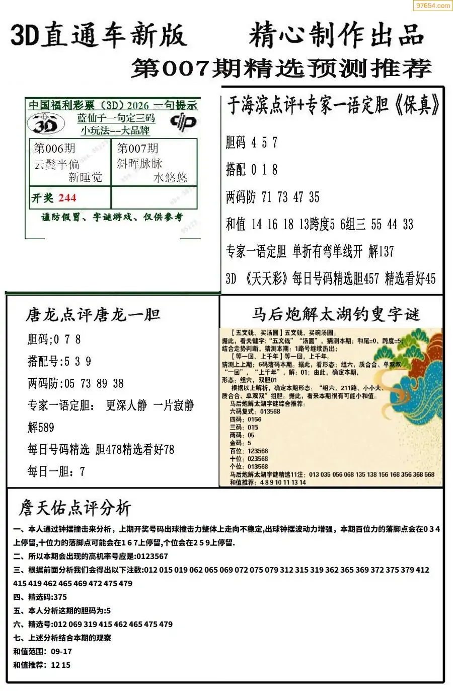 (8)26年007期今日3d各类彩报汇总