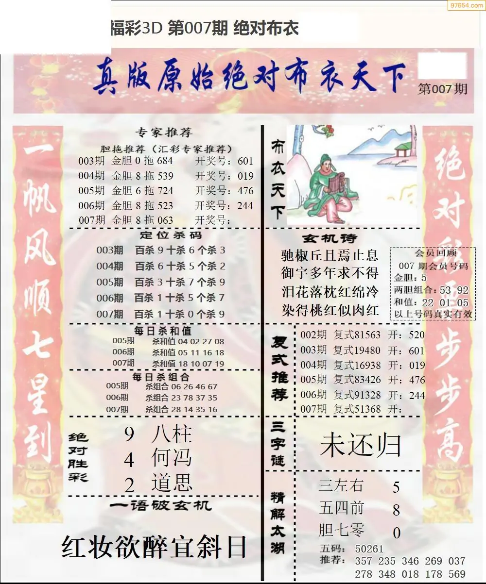 (2)26年007期本期3d图迷汇总_福彩3D图谜总汇图