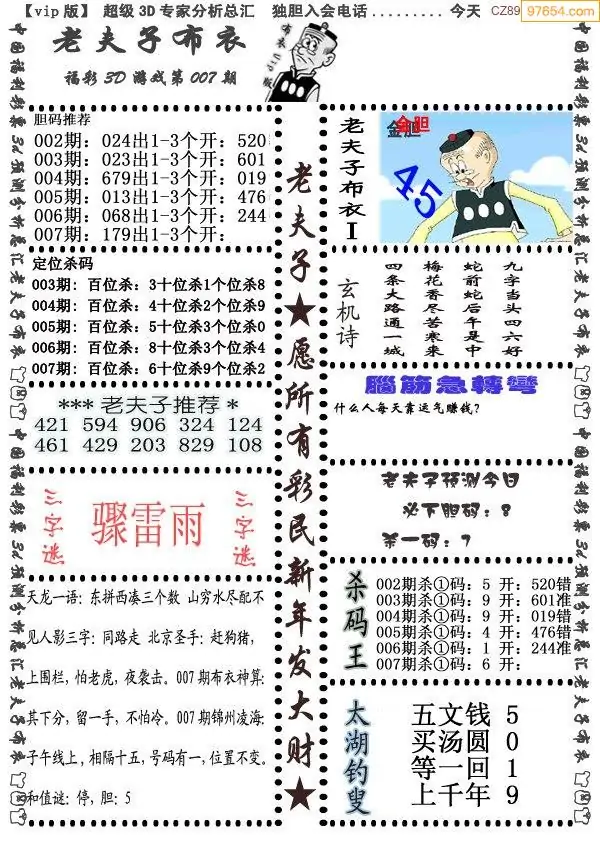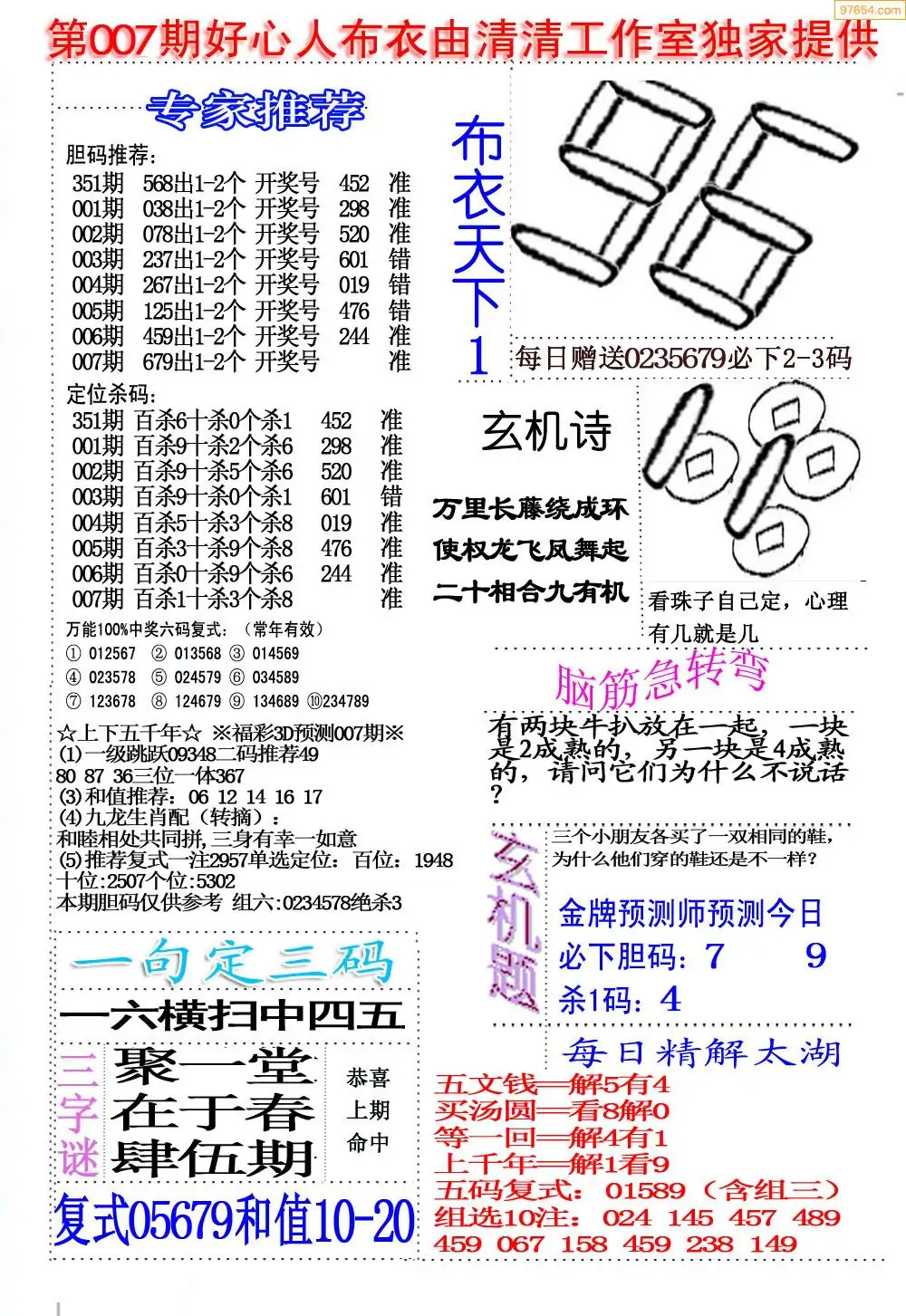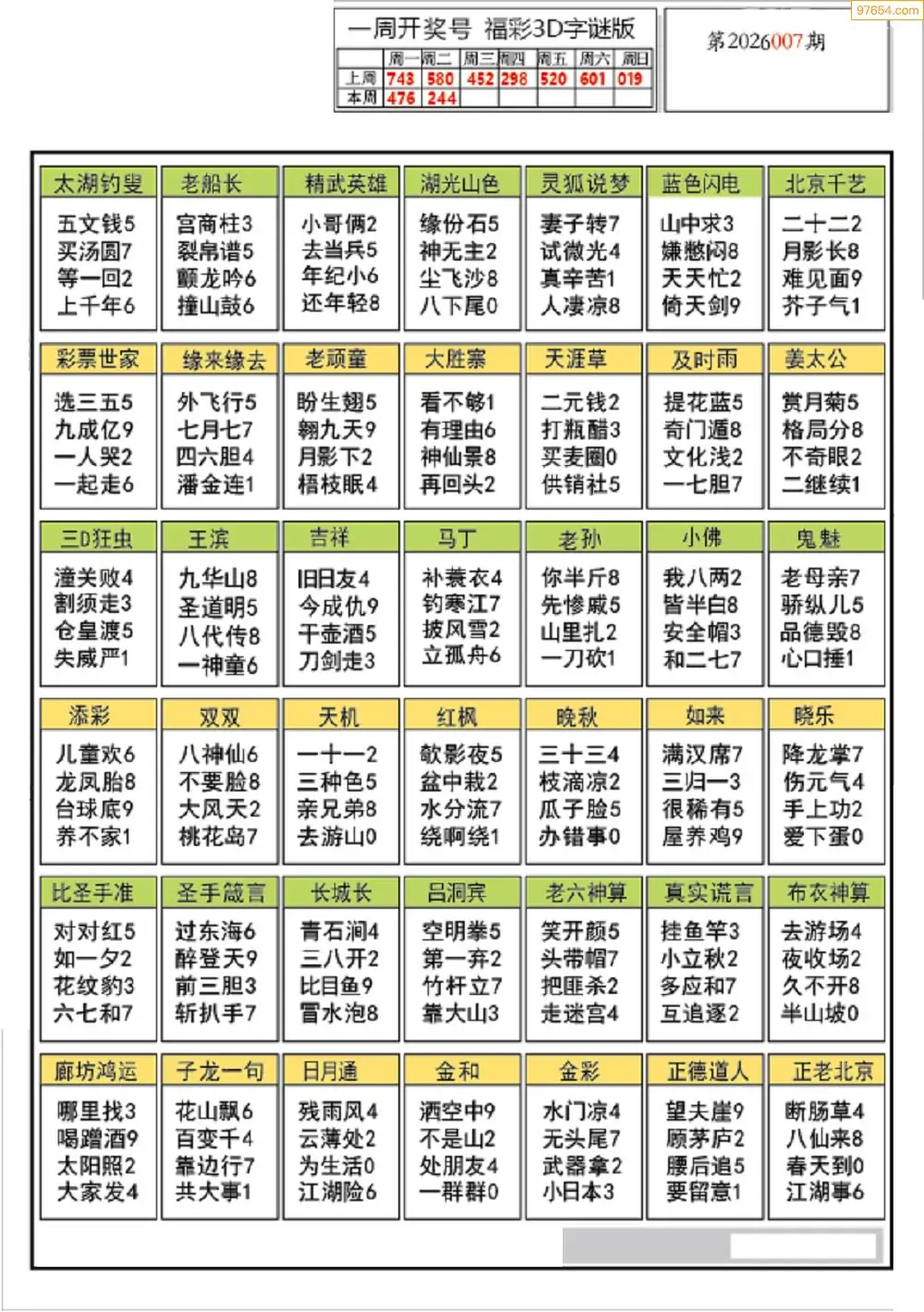 (5)26年007期福彩字谜图谜总汇