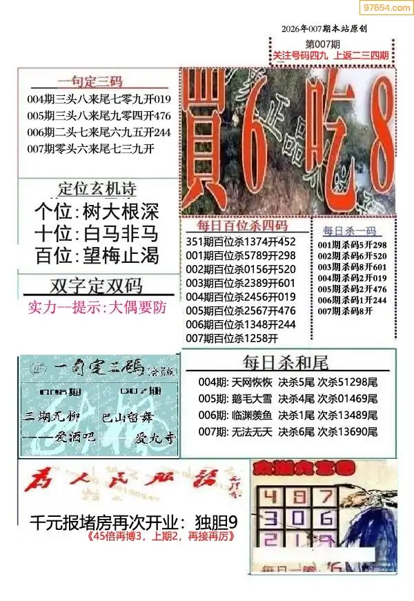 (9)26年008期当期全站杀号定胆图