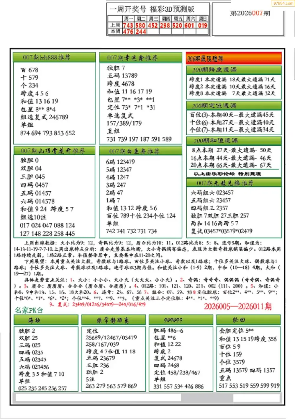 (9)26年007期当期全站杀号定胆图