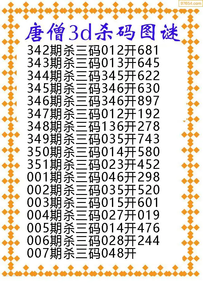 (3)2026007期3D预测总汇全图_福彩3d图谜字谜总汇