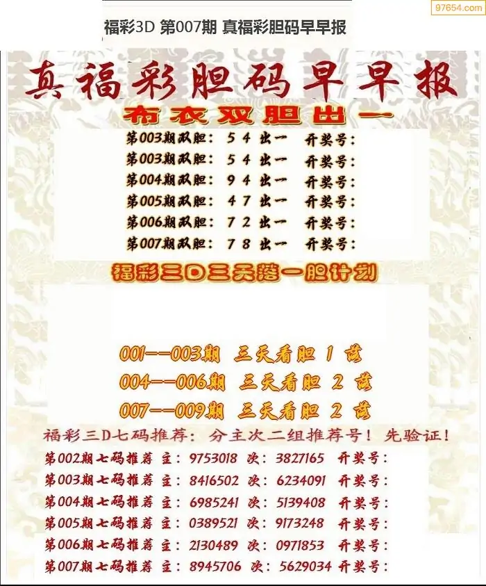 (8)26年007期今日3d各类彩报汇总
