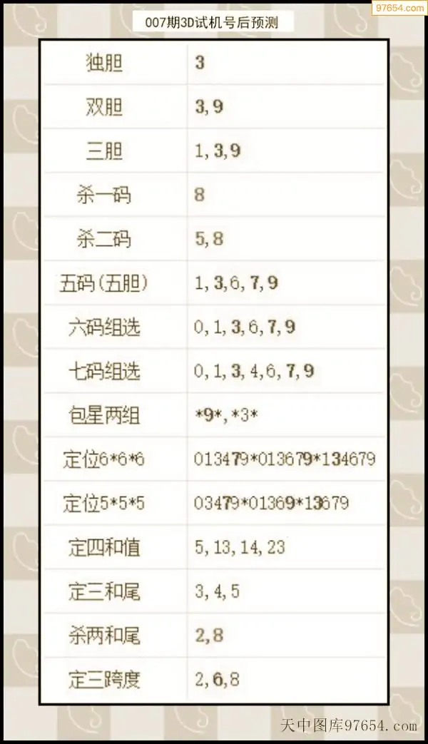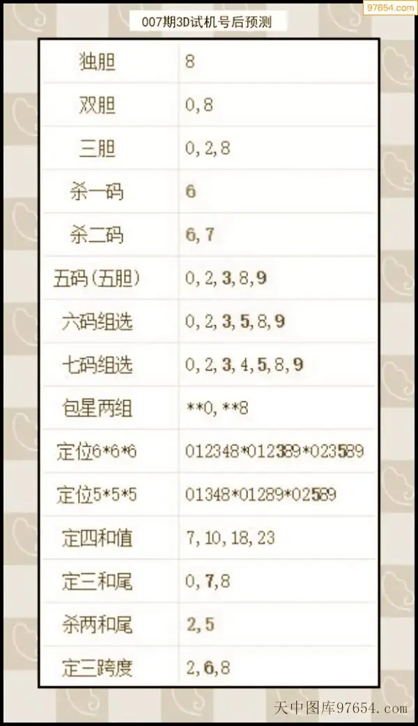3D007期陈哲友福彩试机号后一语定胆(原创)