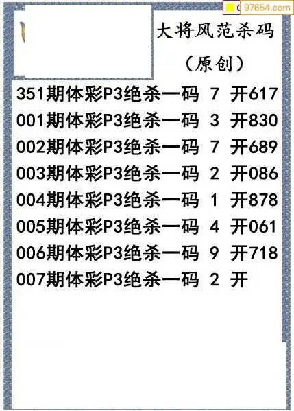 26年007期大将风范p3杀码体彩图谜