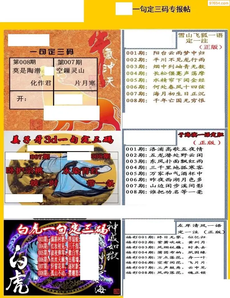 福彩3D011期天牛彩吧套图整合总汇