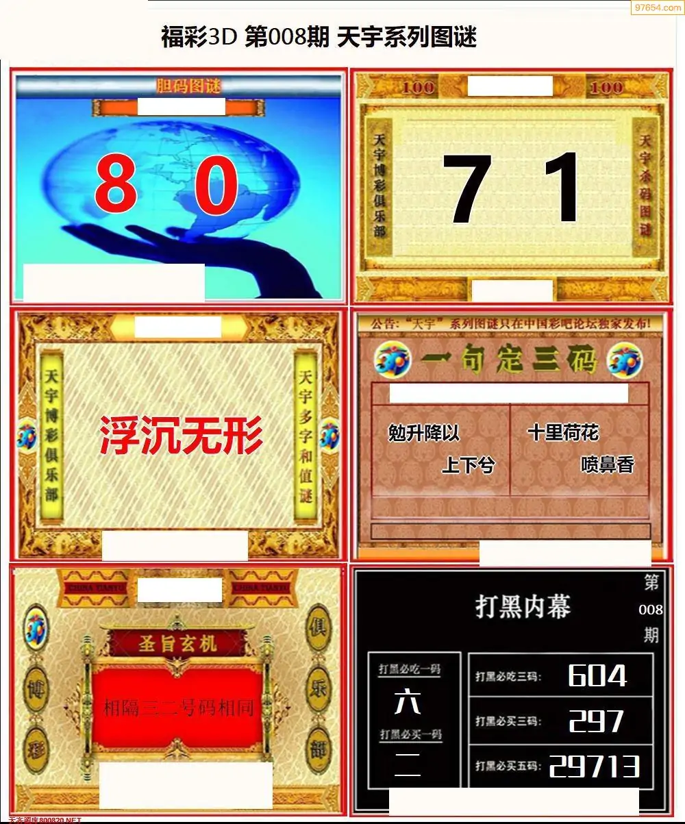 福彩3D008期天牛彩吧套图整合总汇