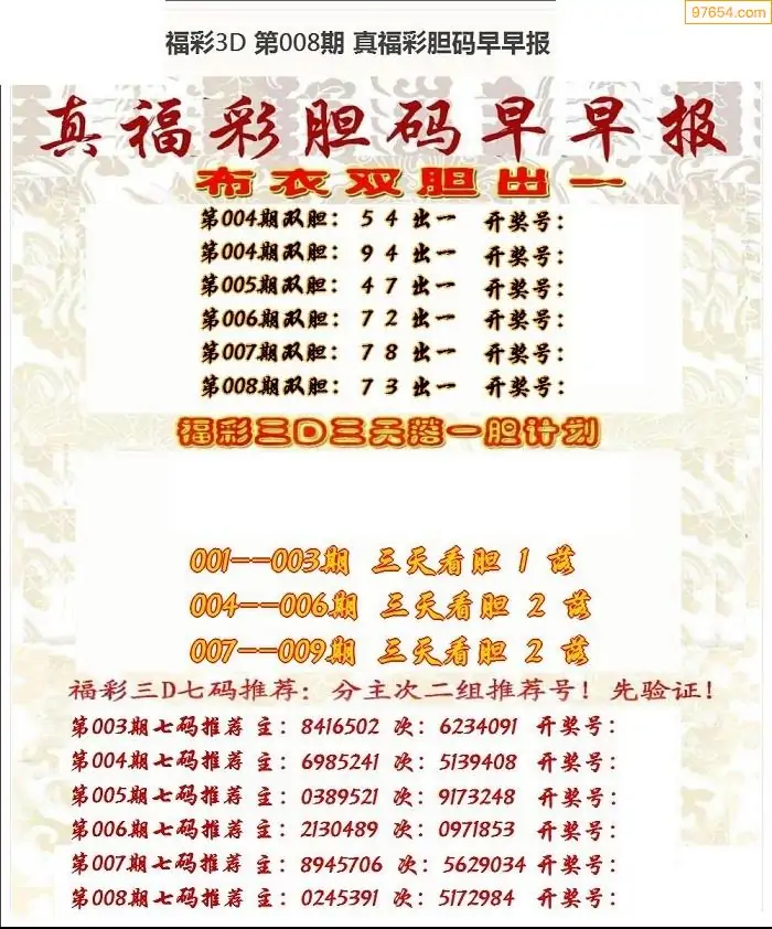 (8)26年008期今日3d各类彩报汇总
