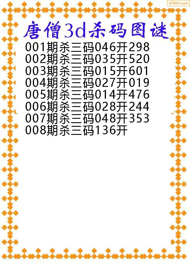 (3)2026008期3D预测总汇全图_福彩3d图谜字谜总汇