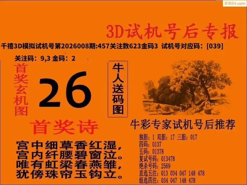 2026009期财旺预测今晚3d独胆