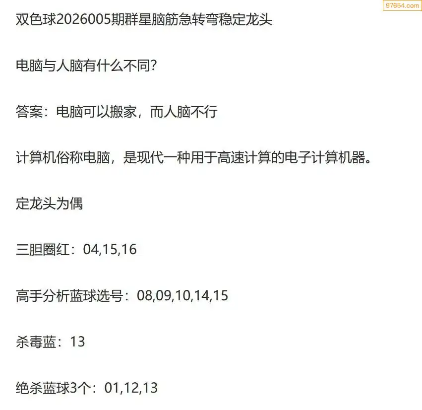 群星双色球26年005期脑筋急转弯龙头谜语