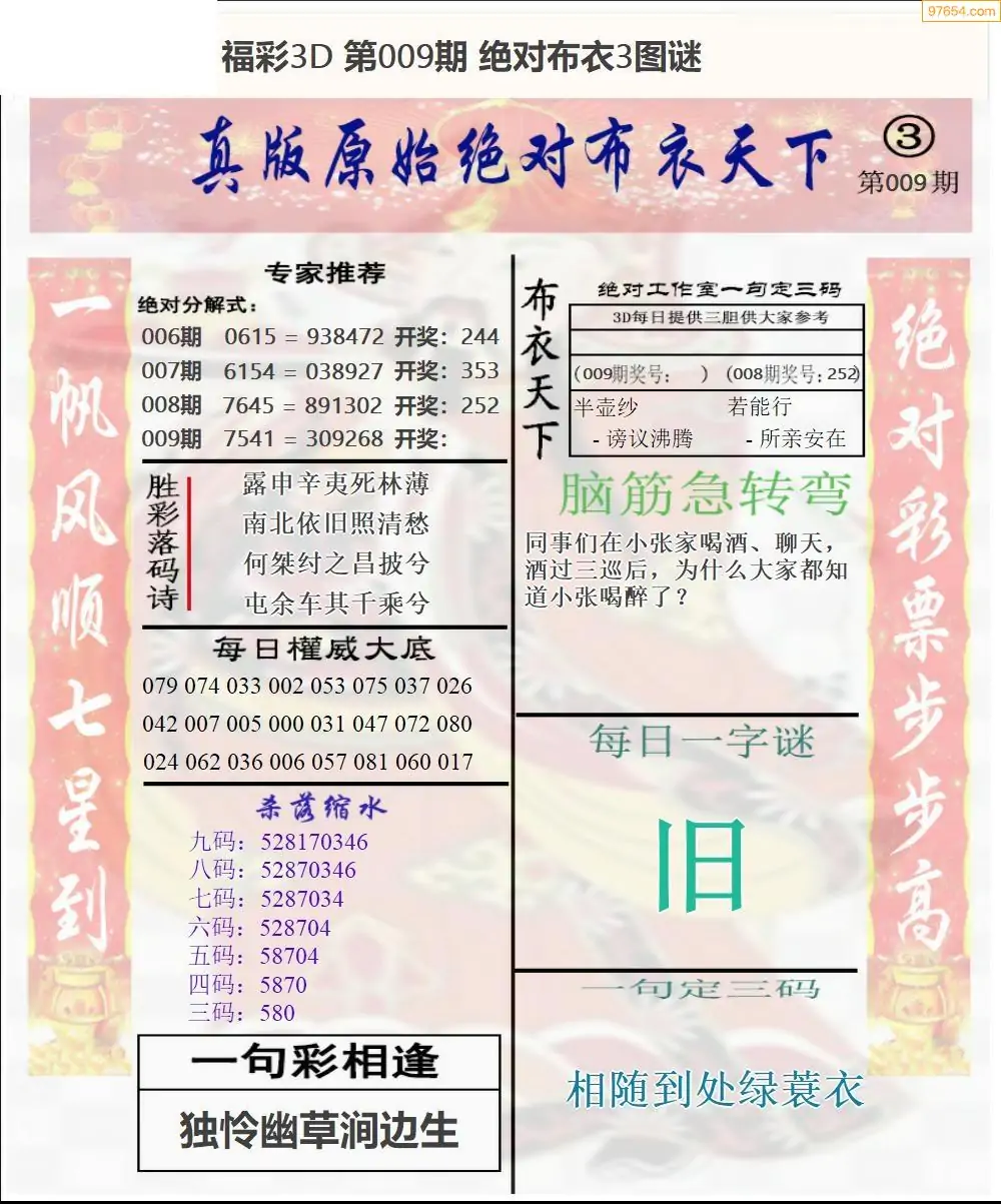 福彩3d009期新禧布衣定位杀号