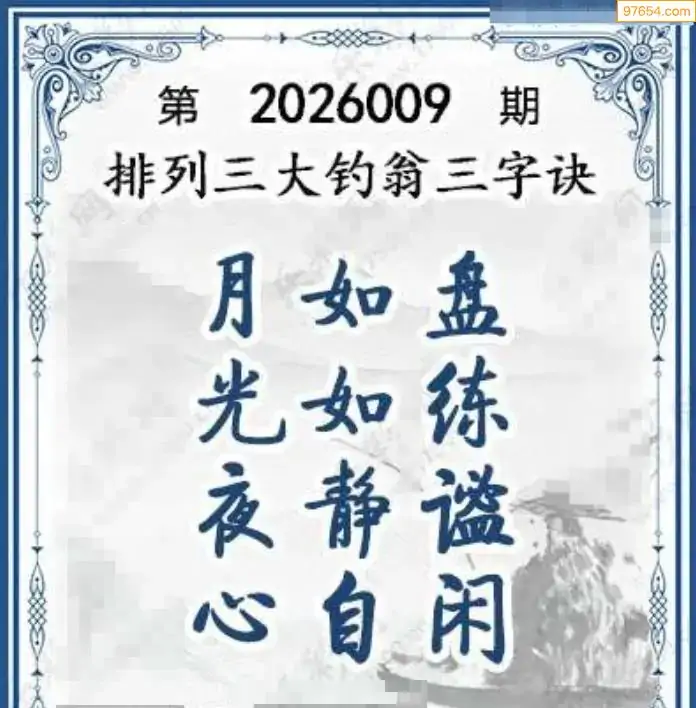26年体彩p3第009期大钓翁三字诀