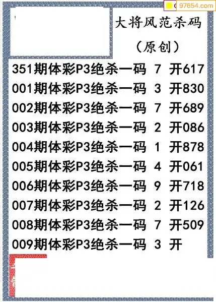 26年009期大将风范p3杀码体彩图谜