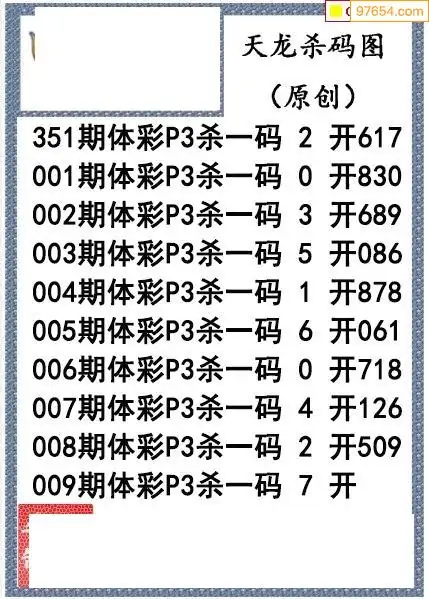 26年009期天龙体彩P3杀码图谜