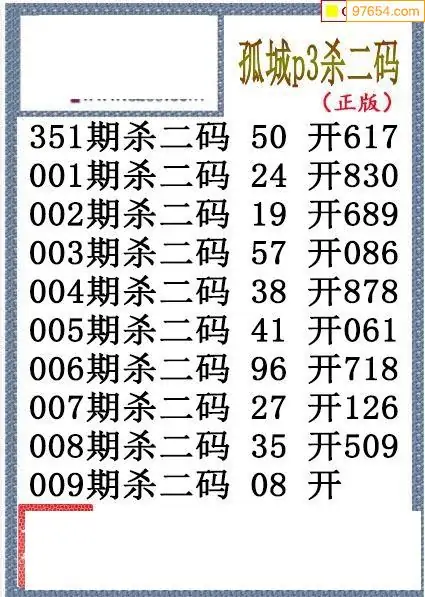 26年009期孤城本期杀码排3图谜