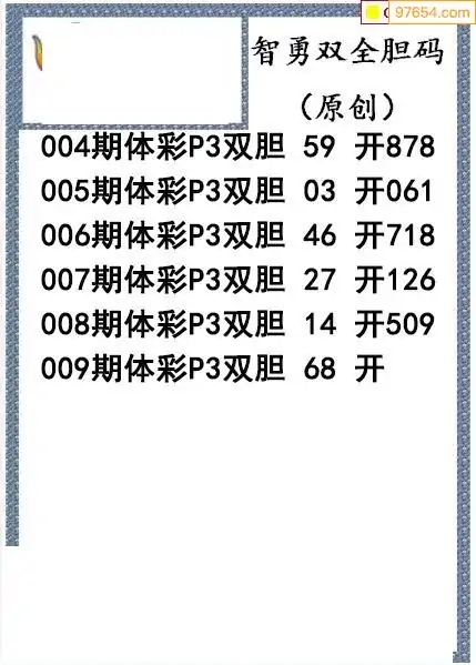 26009期今日P3图迷智勇双全双胆