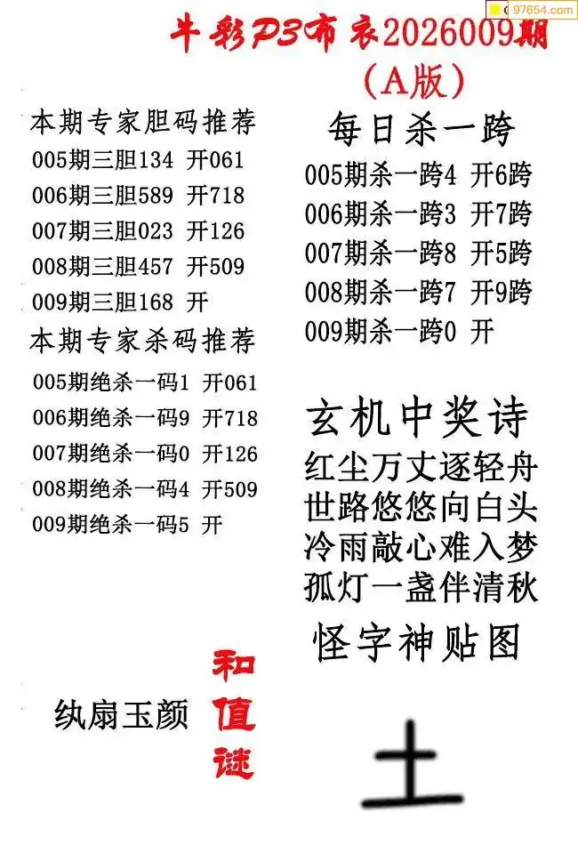 牛彩布衣009期精华版图谜