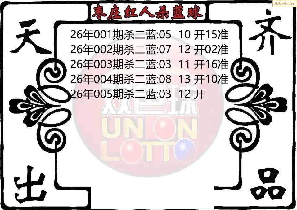 26年双色球005期枣庄红人杀二蓝图迷