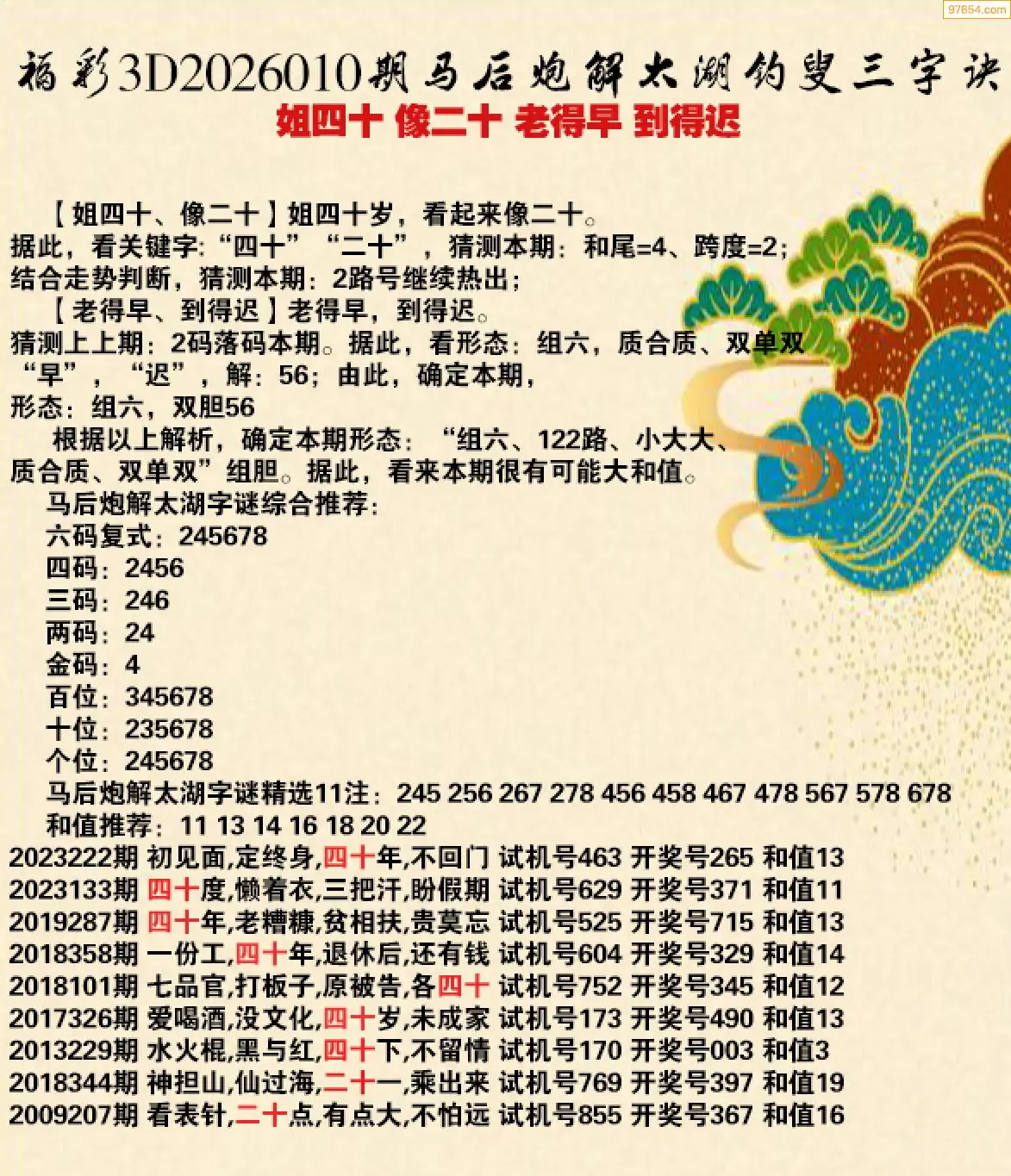 福彩3d26年010期神采飞扬星解太湖三字决