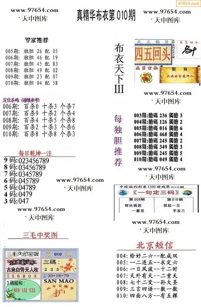 010期真精布衣3d正版布衣123456(原创)