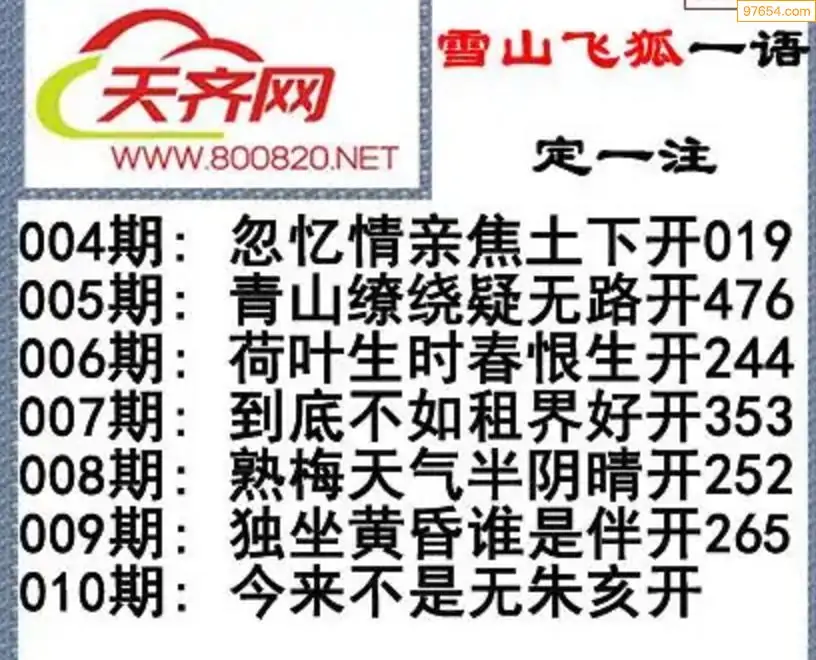 彩票3d字谜010期雪山飞狐一语定一注