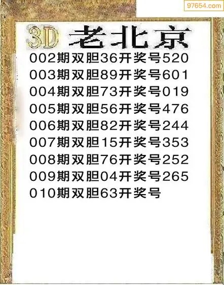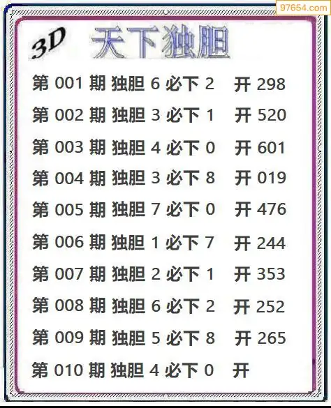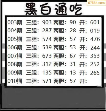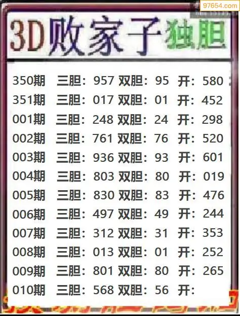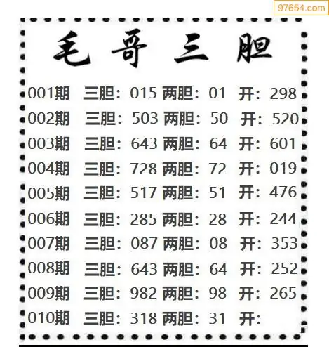 010期97654本站收集胆码出号预测