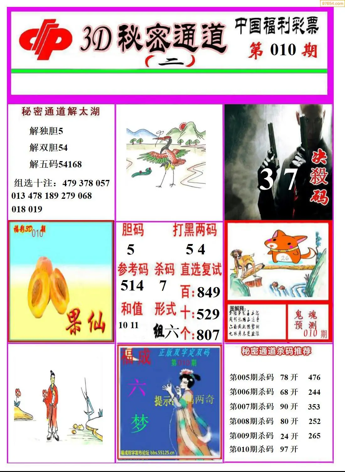 010期97654本站收集胆码出号预测