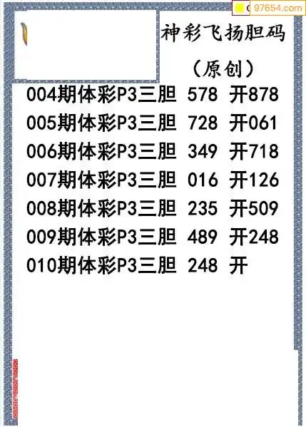 26010期神彩飞扬体彩P3三胆图谜