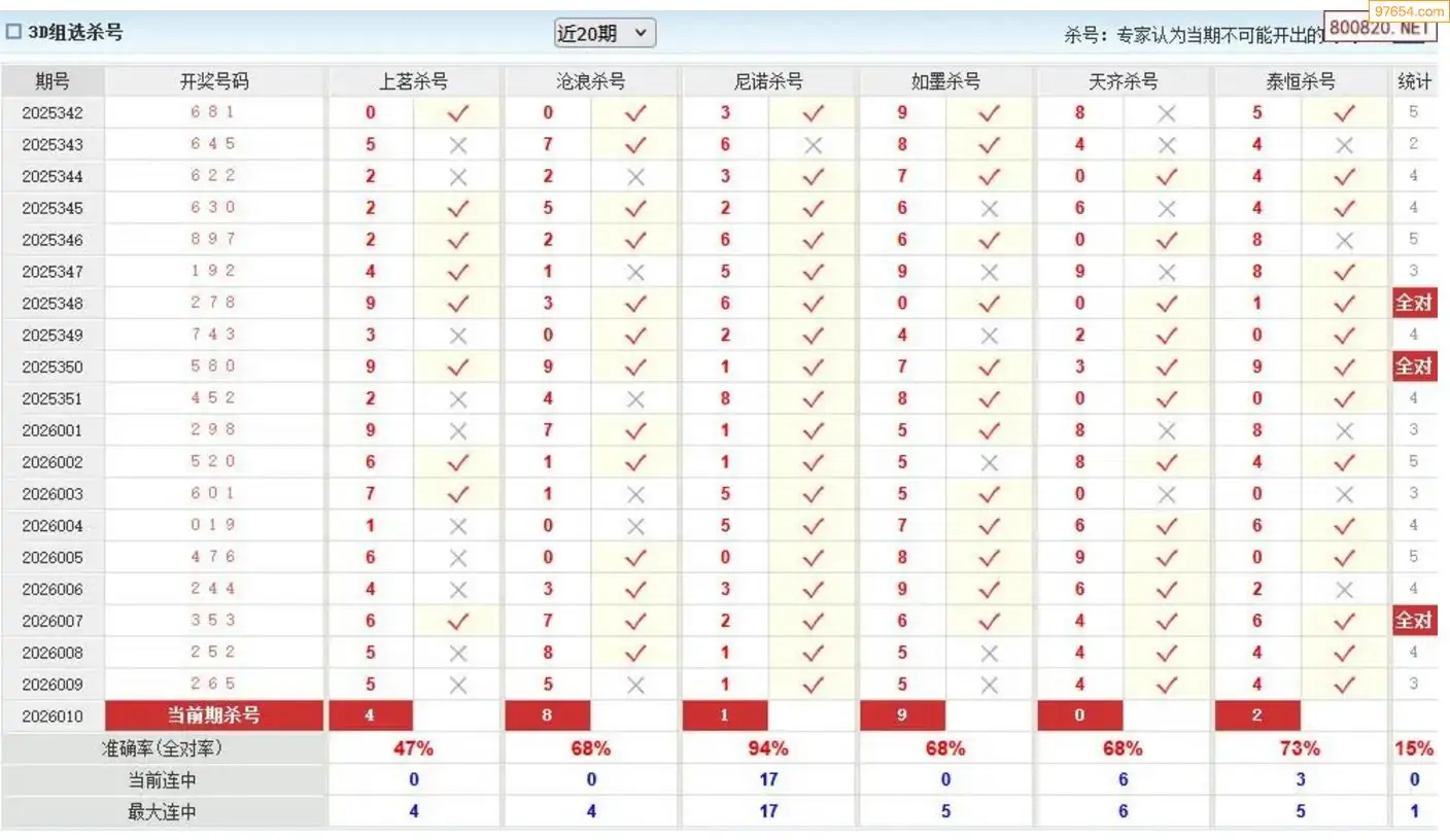 福彩3d澳客专家杀组选26年010期
