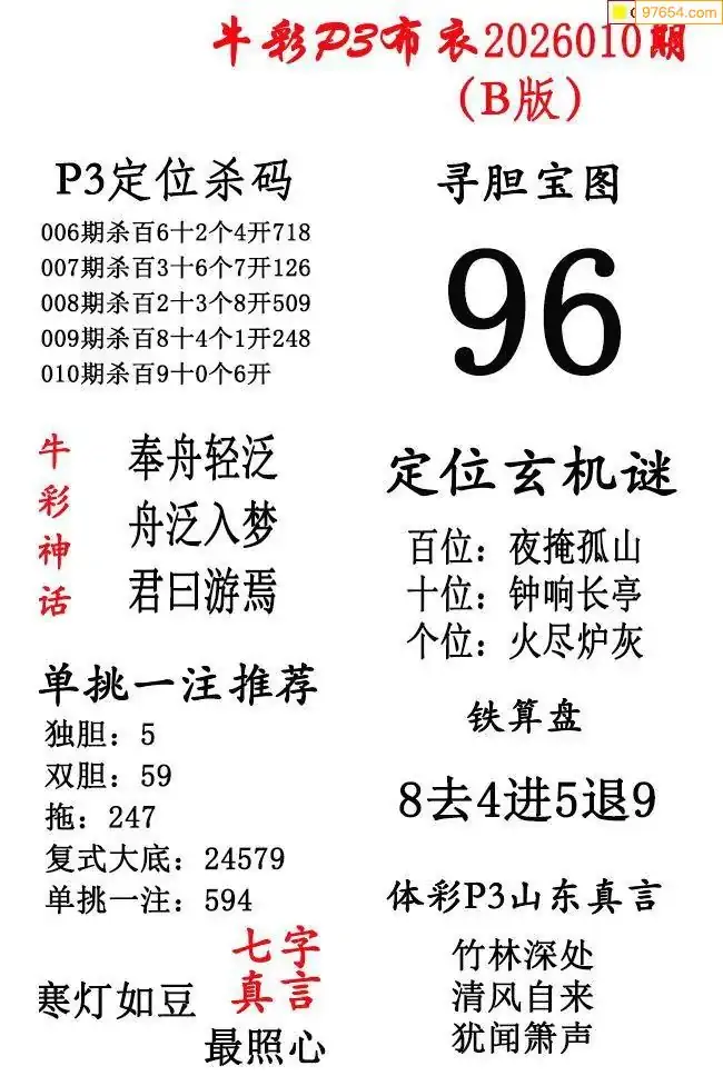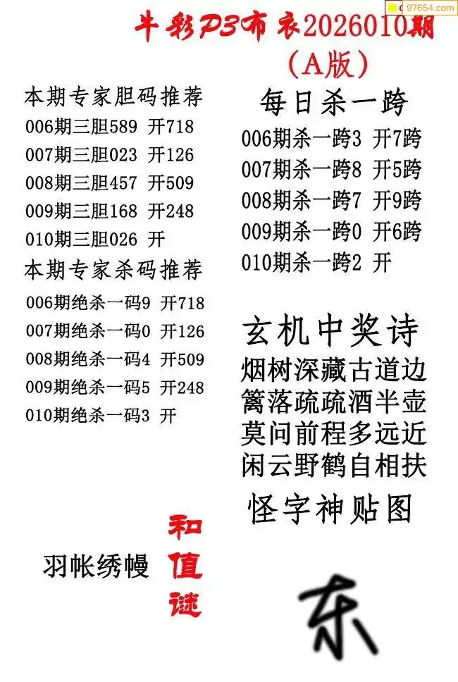 牛彩布衣010期精华版图谜