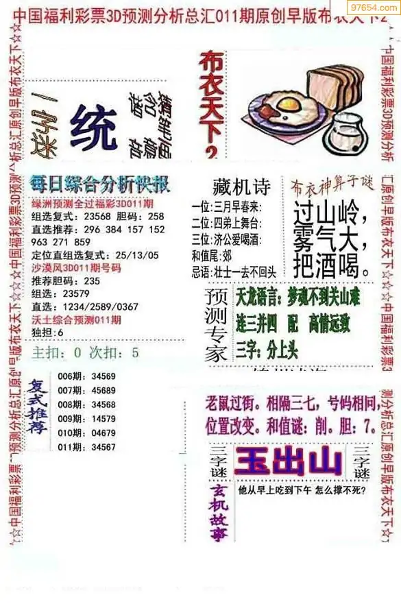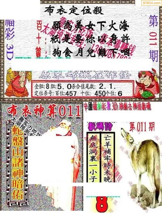 福彩3D011期天牛彩吧套图整合总汇