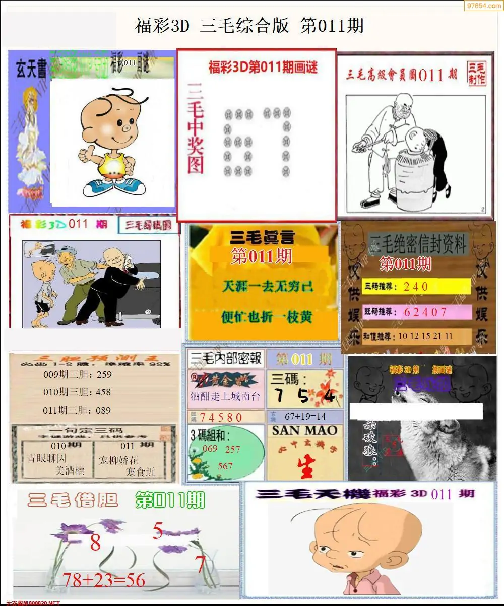 福彩3D011期天牛彩吧套图整合总汇
