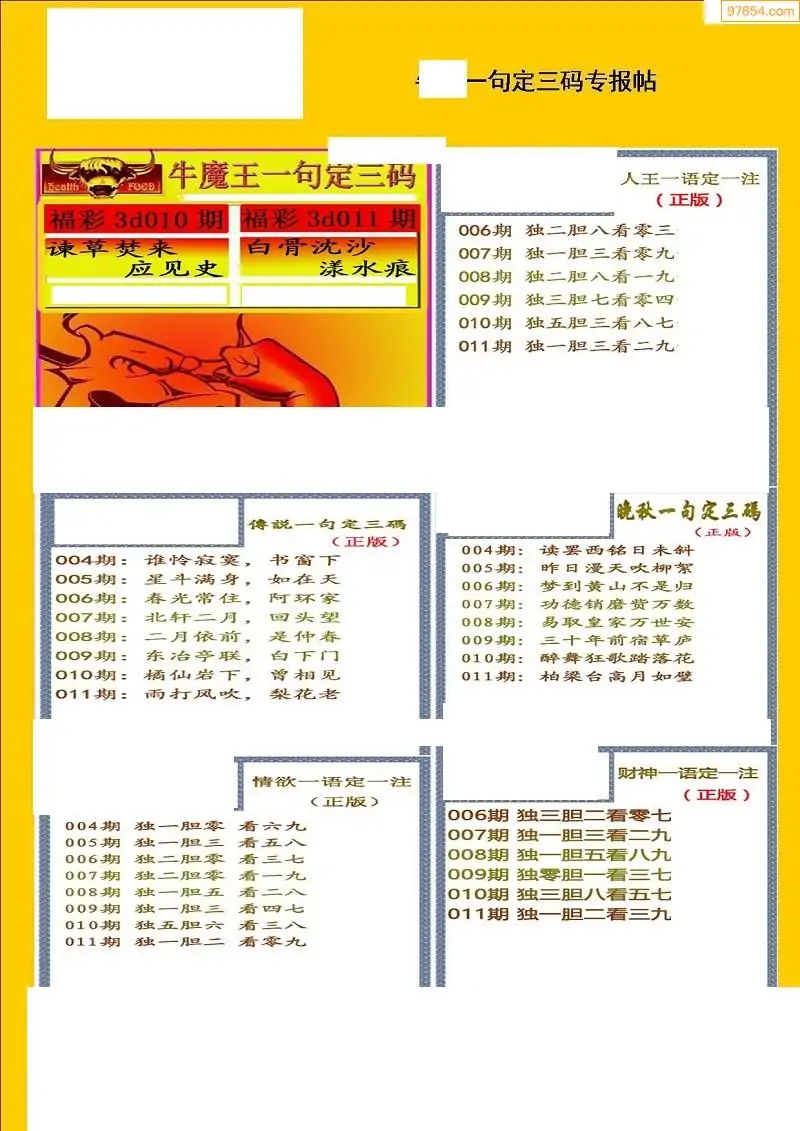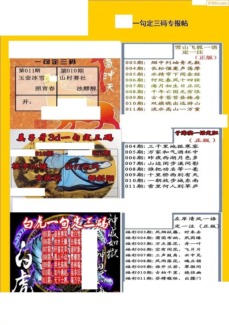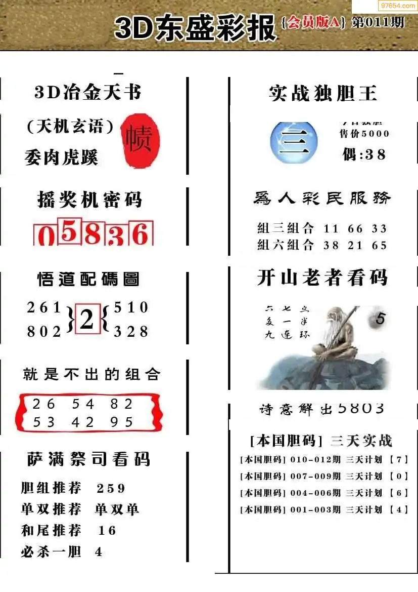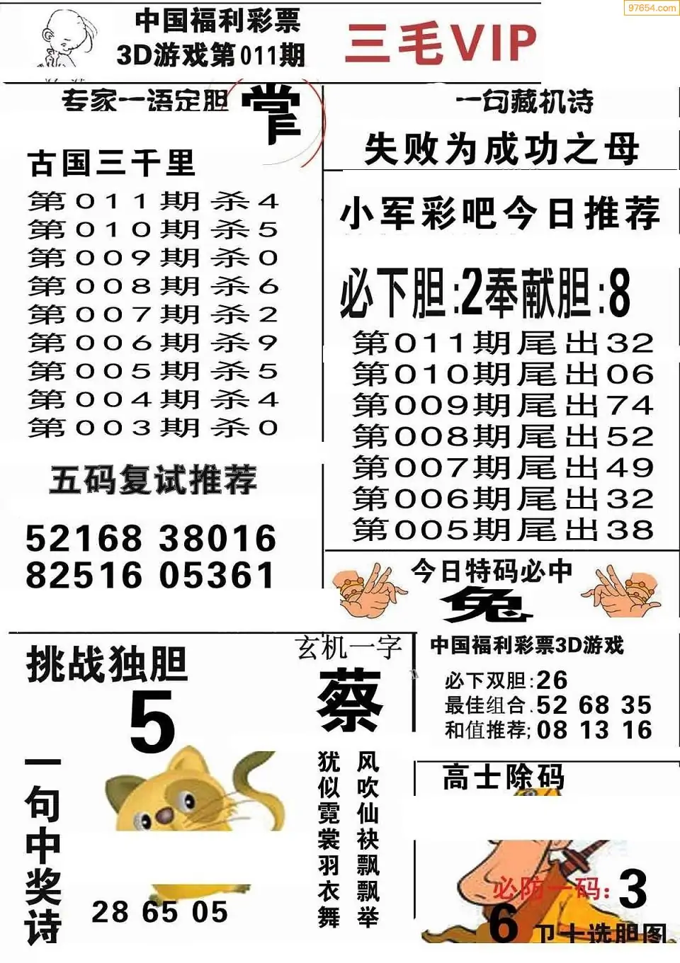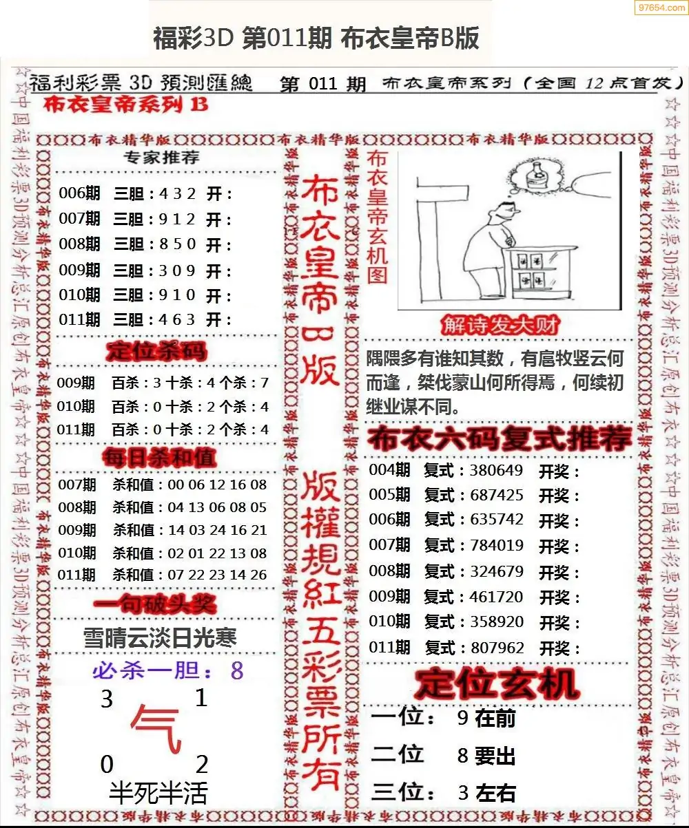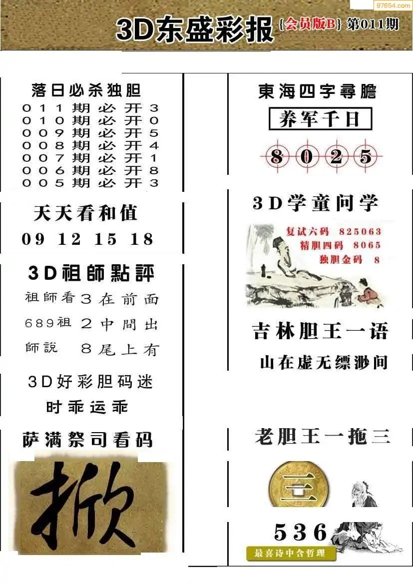 (8)26年011期今日3d各类彩报汇总